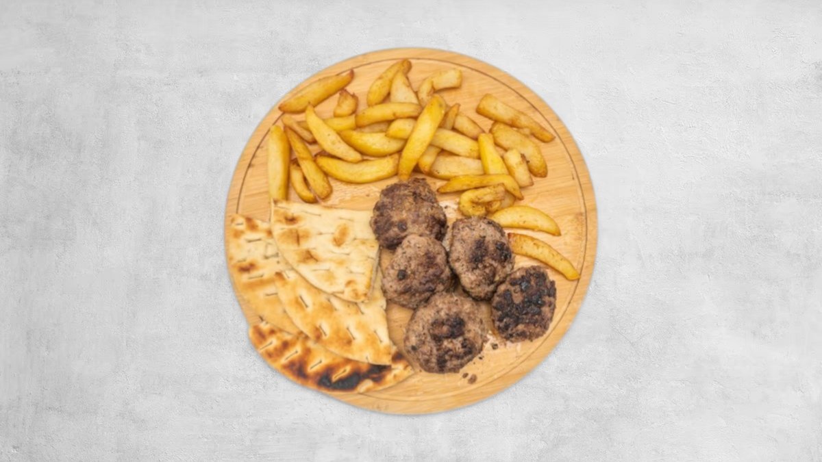 Qofte, majonezë, domate, lakër, djathë cheddar