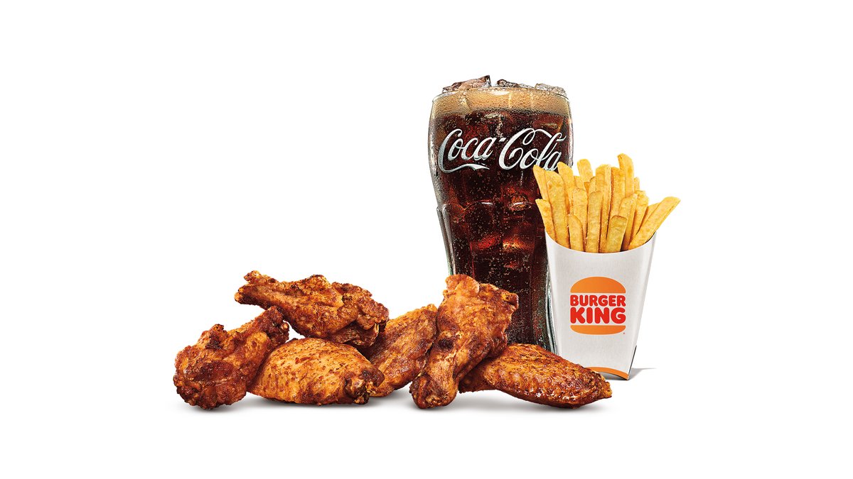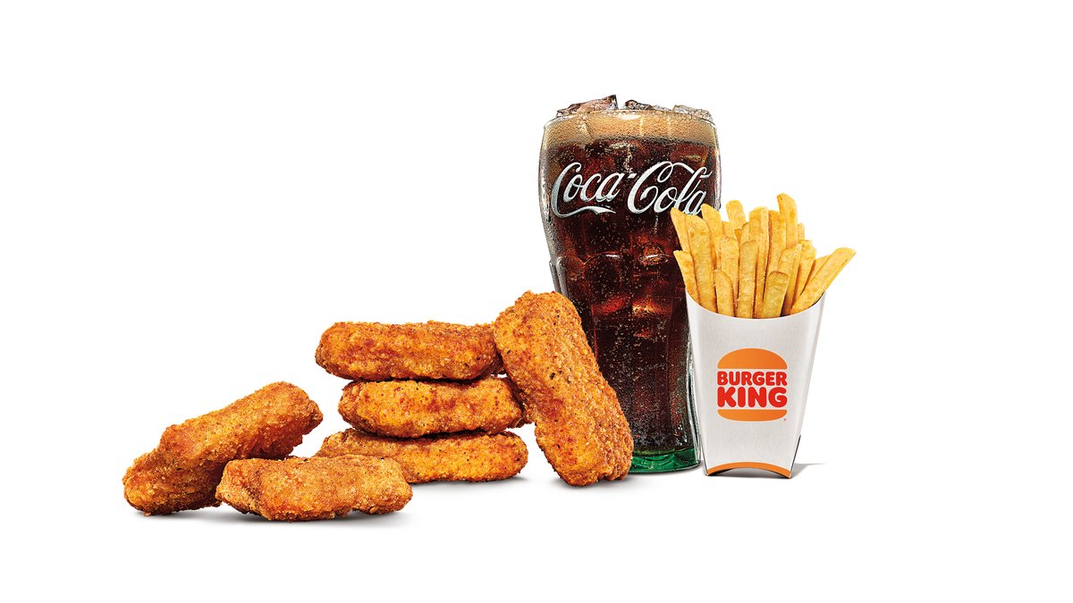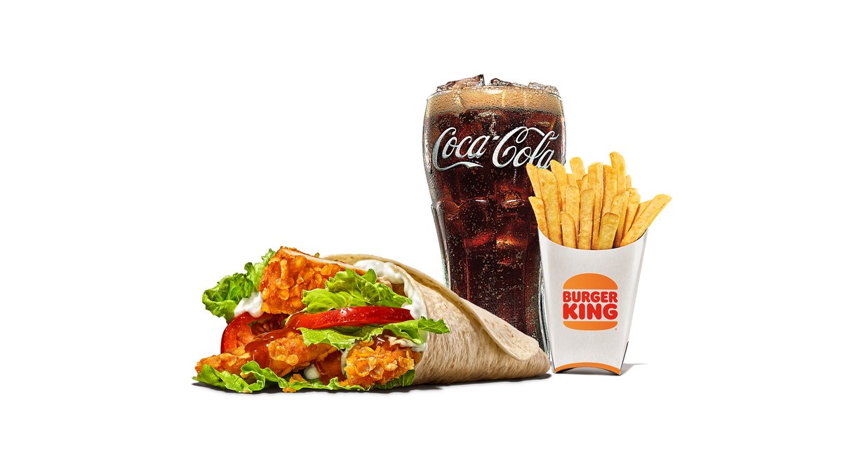 Salcë big king, sallatë iceberg, qepë, kastravec turshi, american cheese, 2 whopper patty, patate e mesme, pije