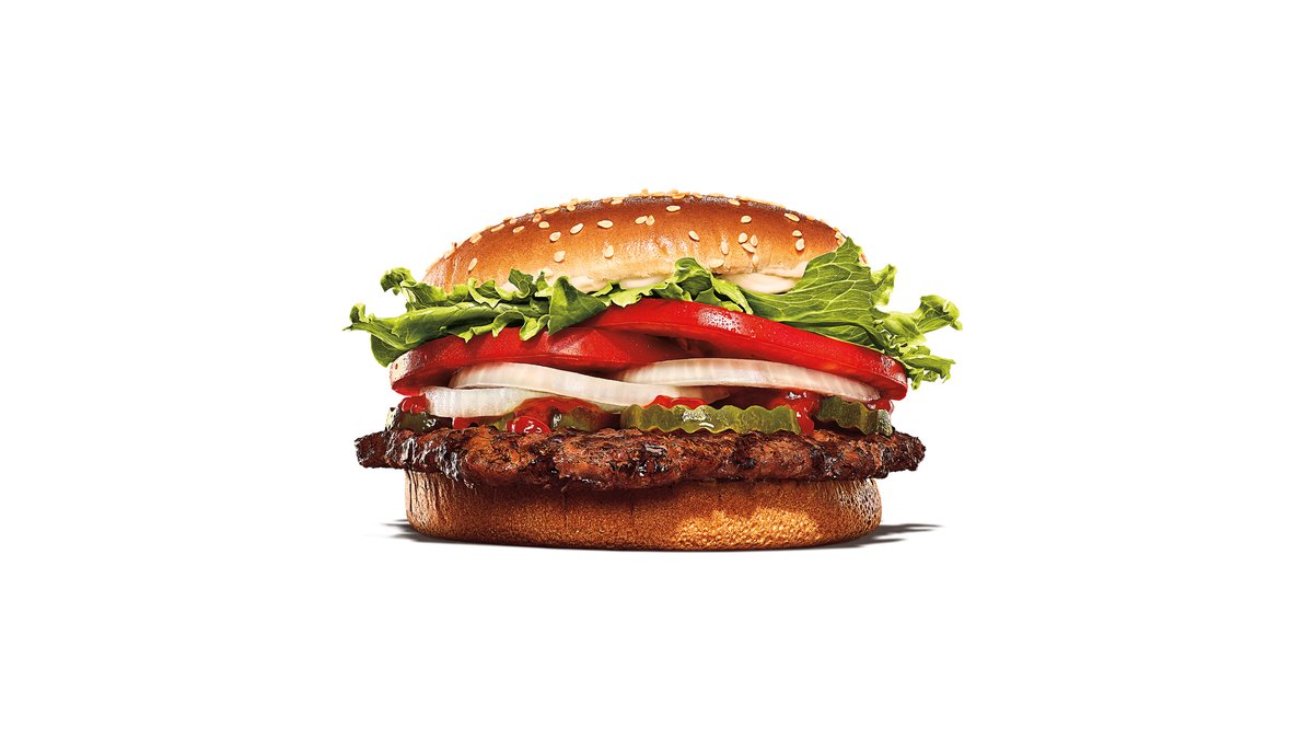 Majonezë, sallatë iceberg, domate, kastravec turshi, qepë, ketchup, 2x whopper patty