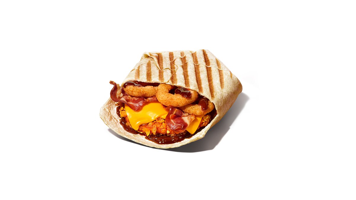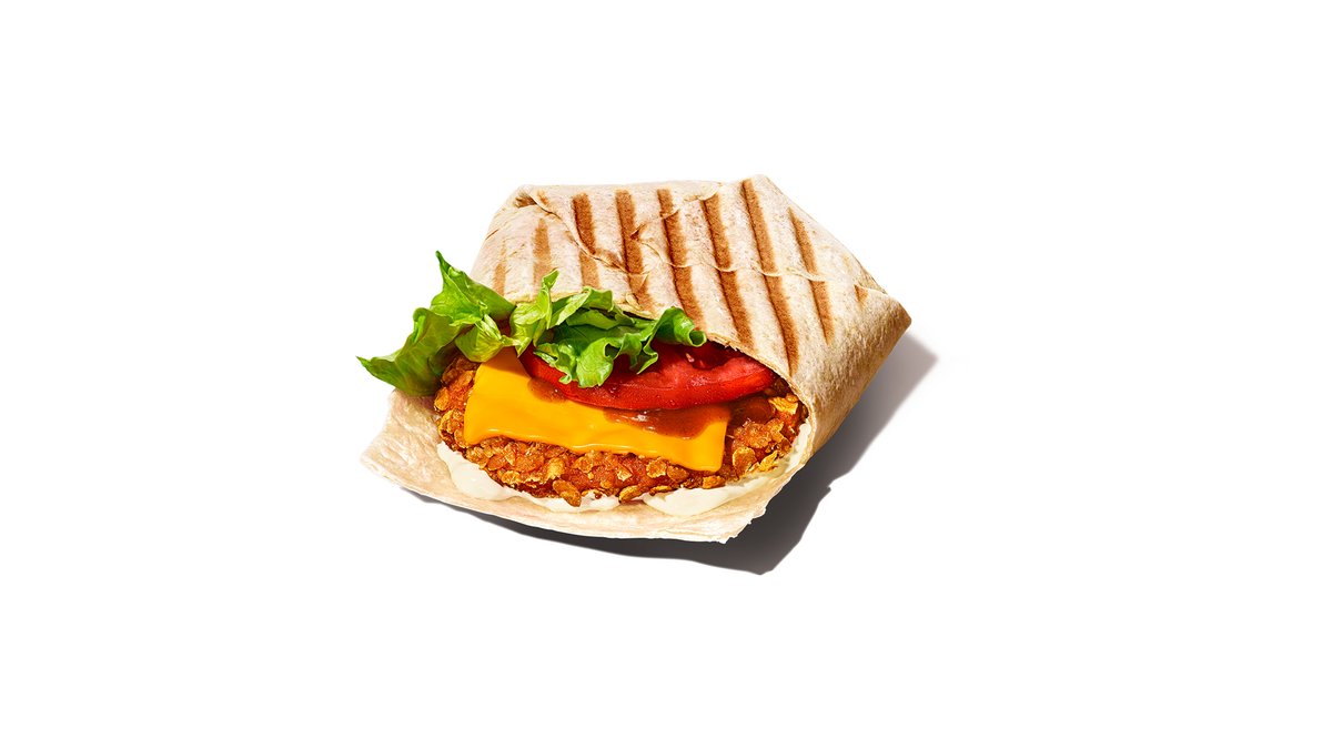 Domate, sallatë jeshile, qofte krokante pule, salcë djathi djegëse, djathë amerikan, majonezë, petë tortilla