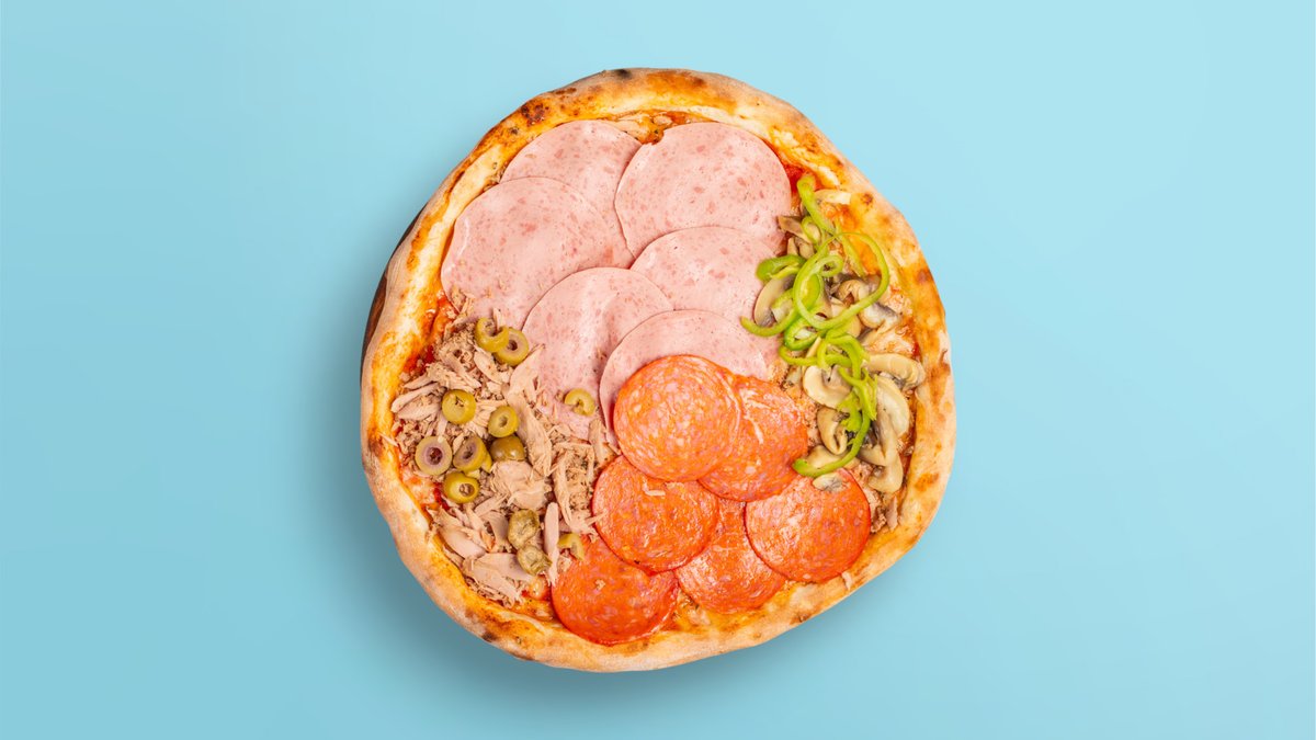 Salcë arlindi, ton peshku, proshutë viçi, kërpudhë verdura, mozzarella