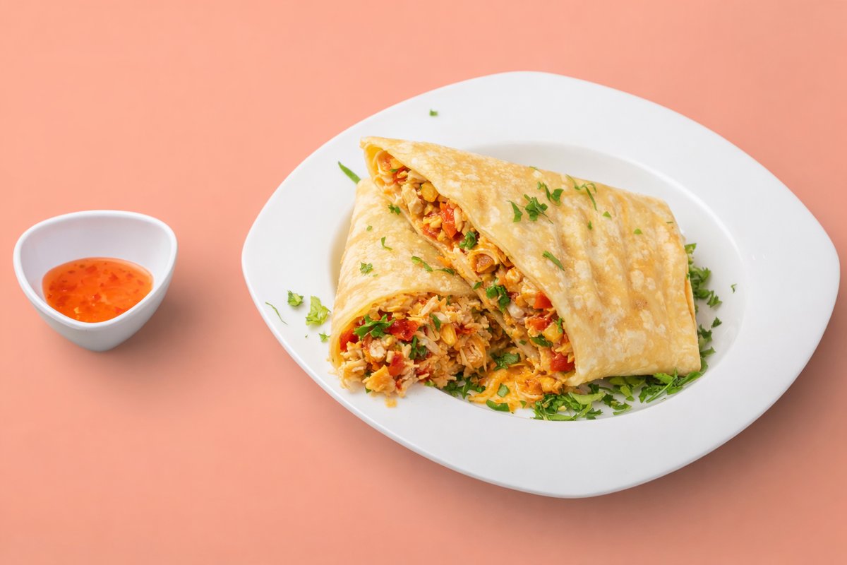 Chicken, spicy sauce, avocado, red onion, tomato, mozzarella