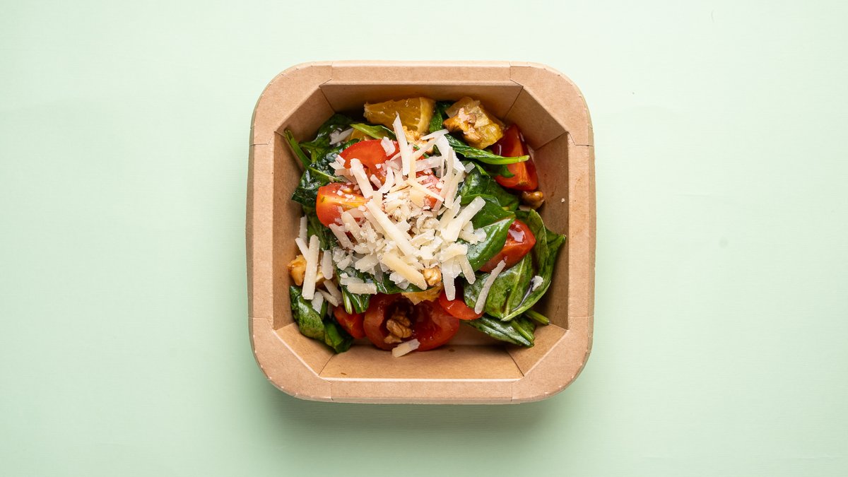 Spinach, walnuts, cherry tomatoes, parmesan, balsamic