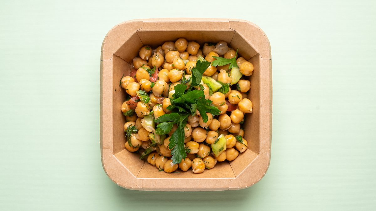 Chickpeas, spring onion, fresh mint, parsley, tomatoes, cucumber, dill, lemon, pomegranate sauce, summac, paprika