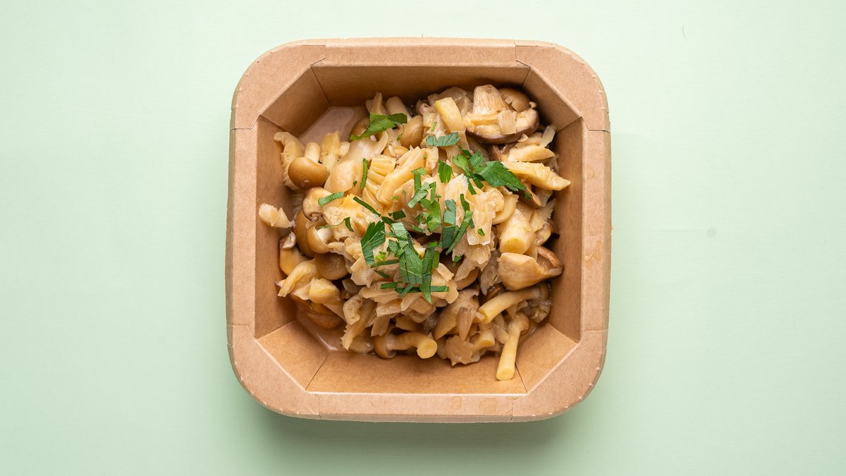 Oyster mushroom, shimeji mushroom, porcini mushroom, orange, lemon, brown sugar, olive oil, basil