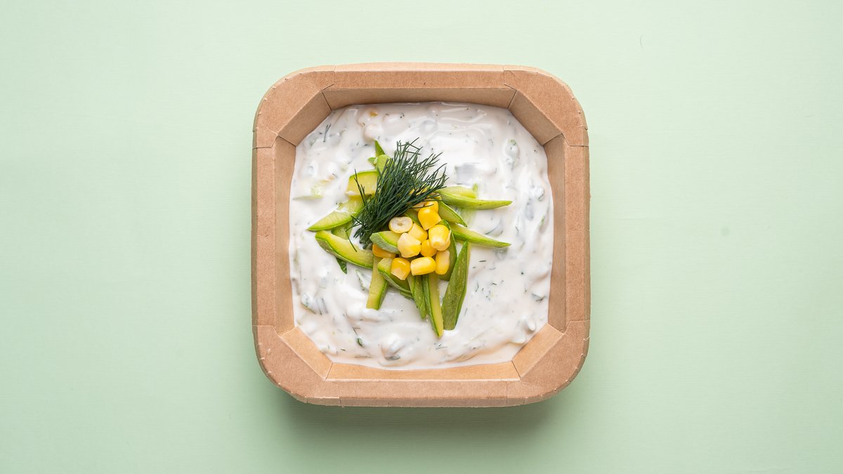 Zucchini, yoghurt, spring onion, cucumber, corn, sesame seeds, olive oil, lemon, dill
