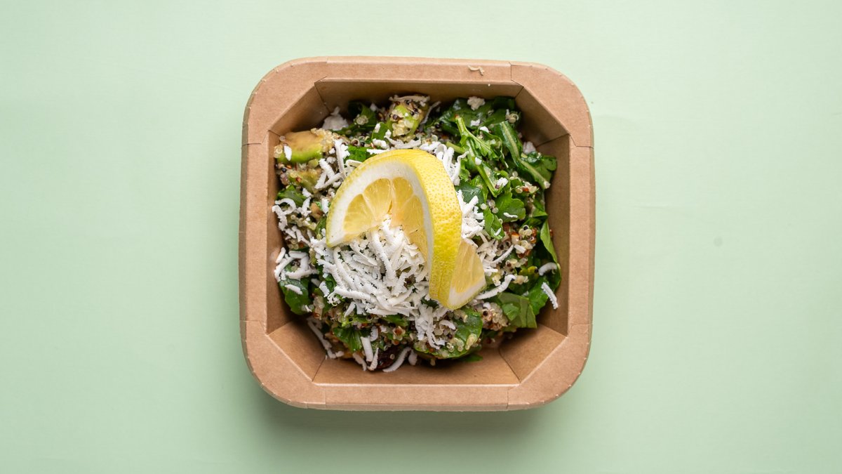 Quinoa mix, arugula, avocado, almonds, pumpkin seeds, cranberries, feta cheese