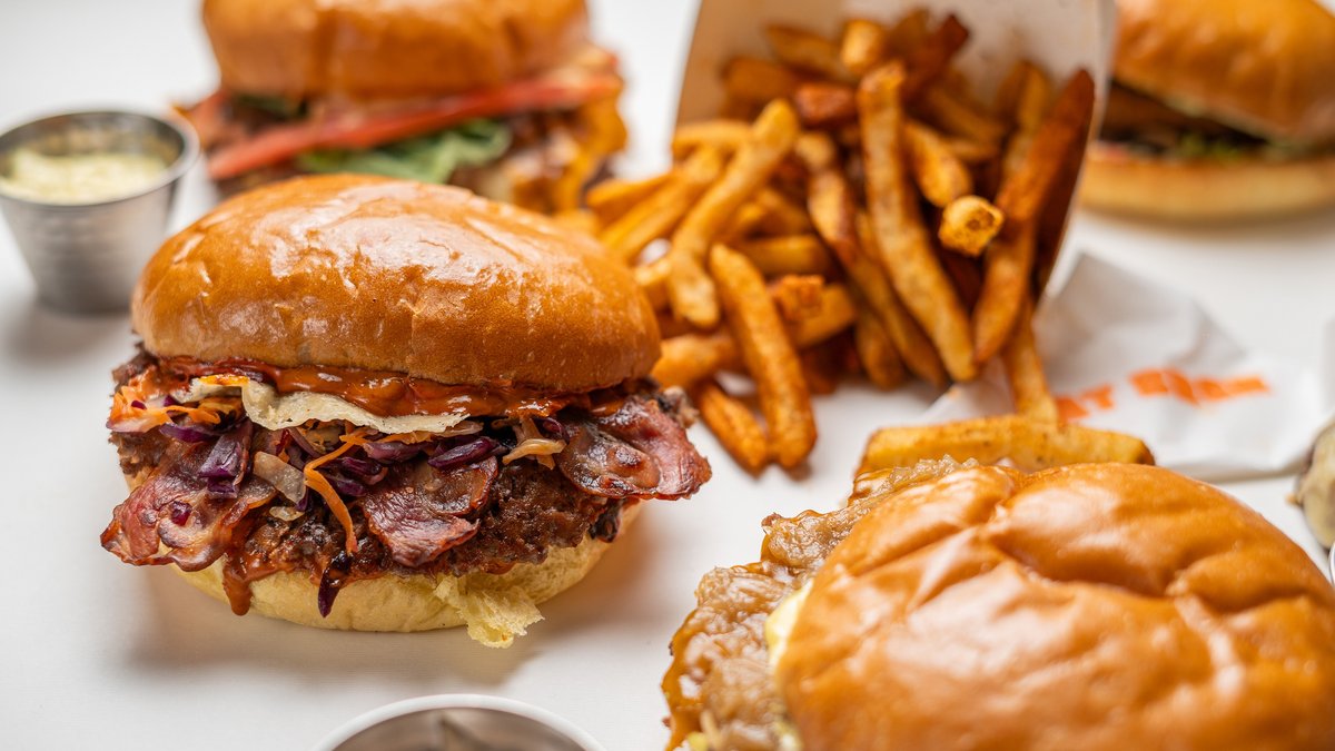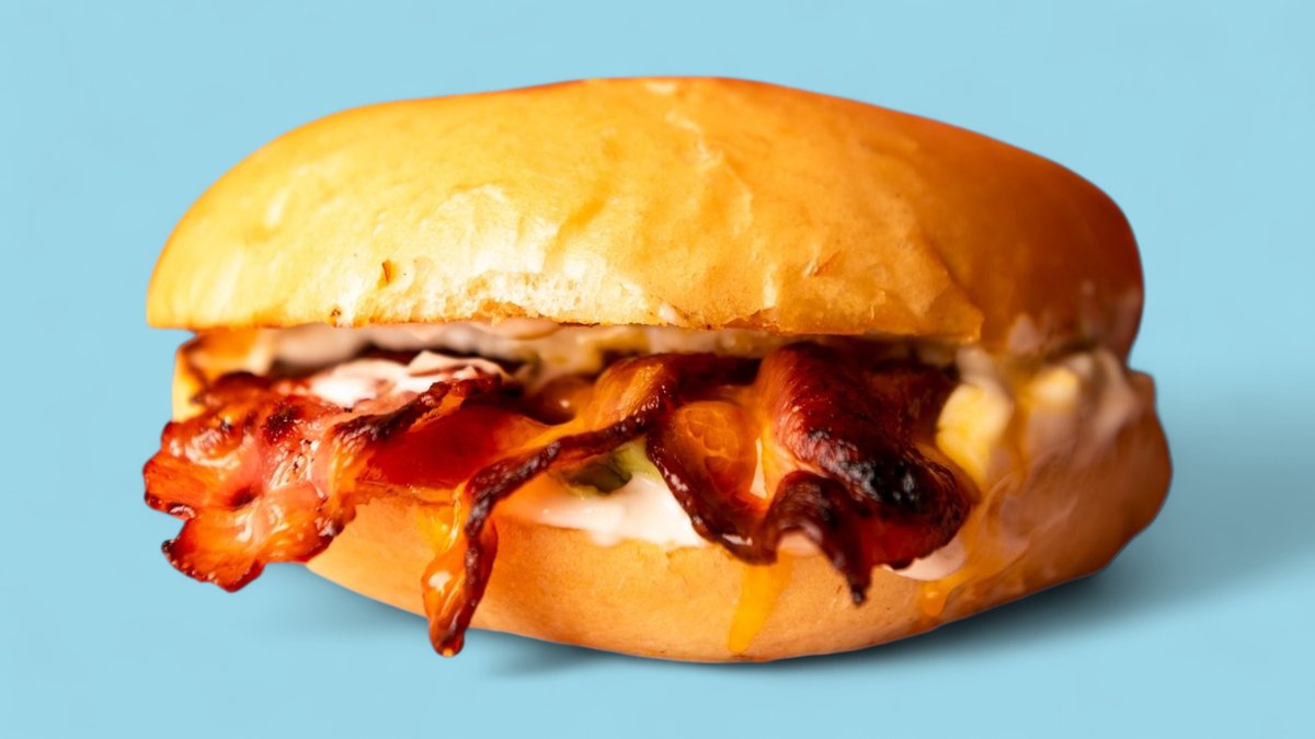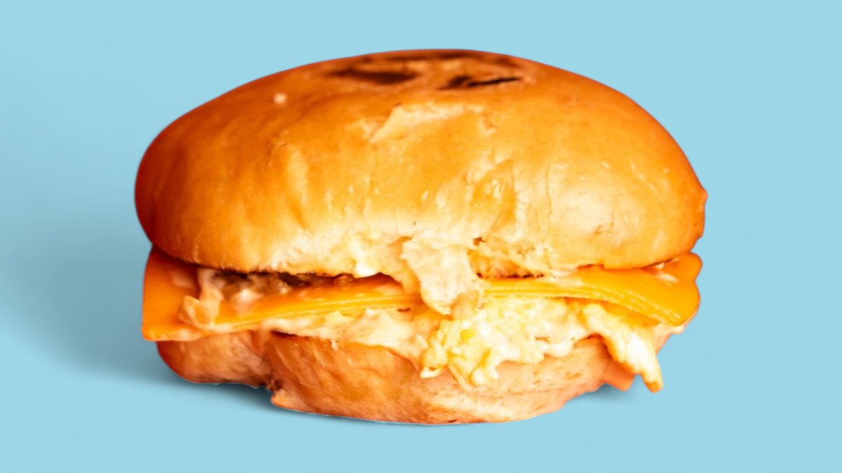 Potato bun, smashed patty in wrapped omelette, cheddar, house mayo