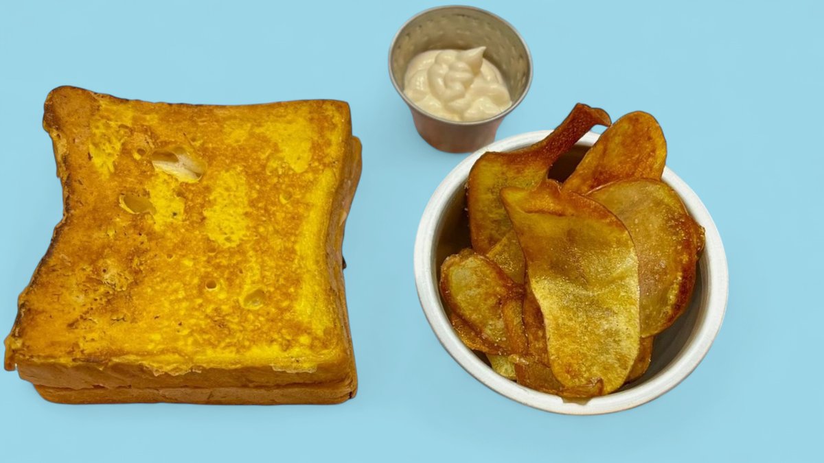 Shokupan bread, house mayo, cheddar, turkey ham, crispy chips