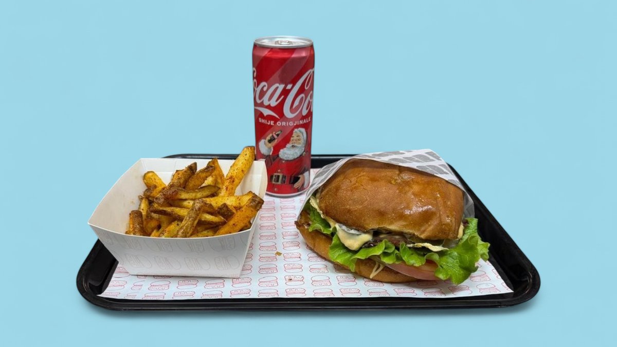 Smashed patty, potato bun, tomatoes, lettuce, emmental cheese, jalapeño peppers, sriracha mayonnaise