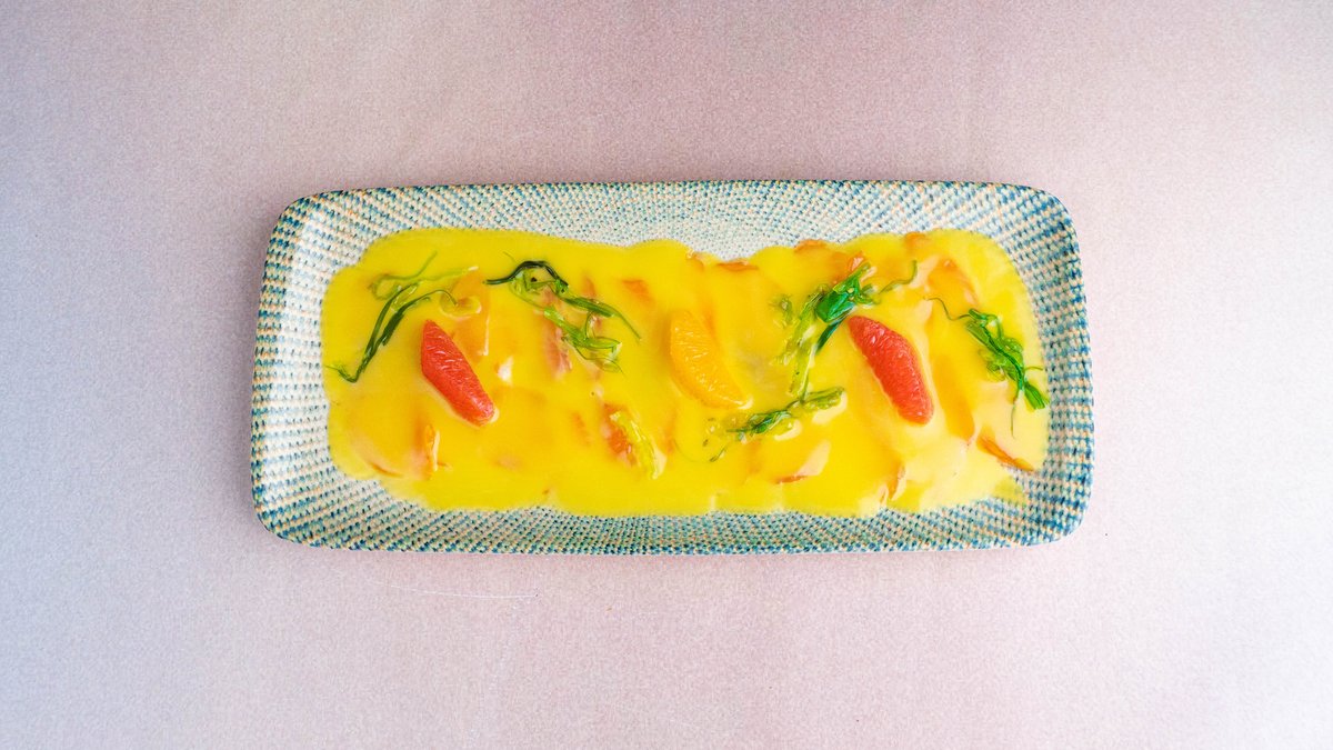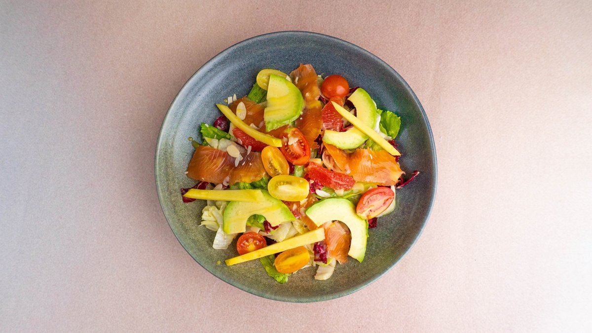 Mixed leaves, radicchio, citrus, mango, salmon, orange dressing