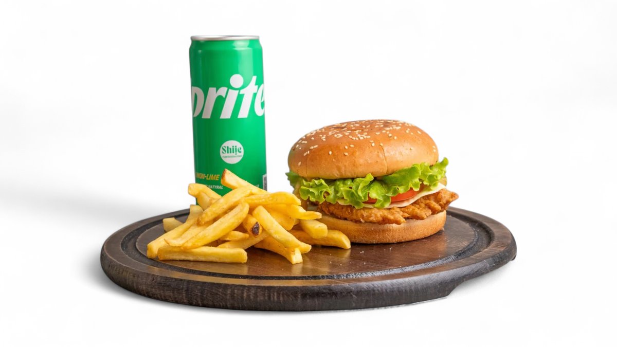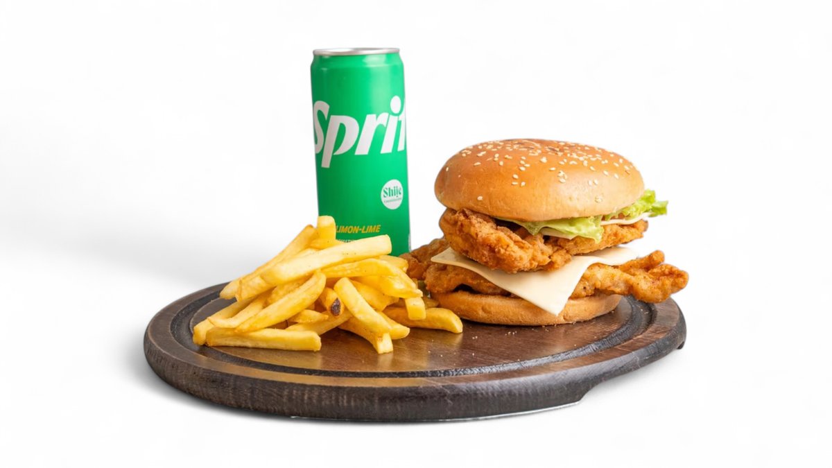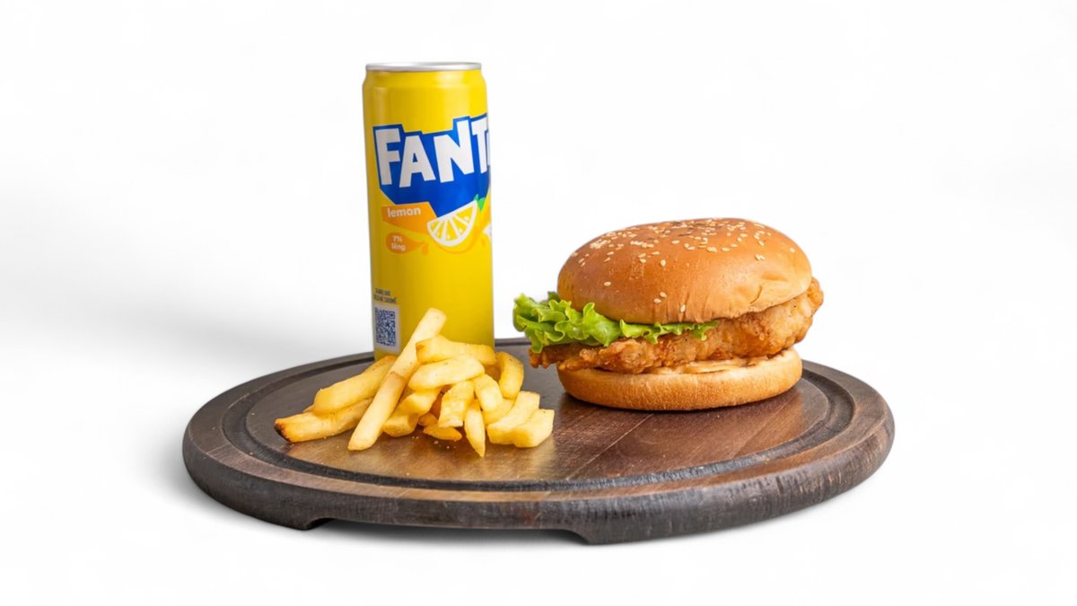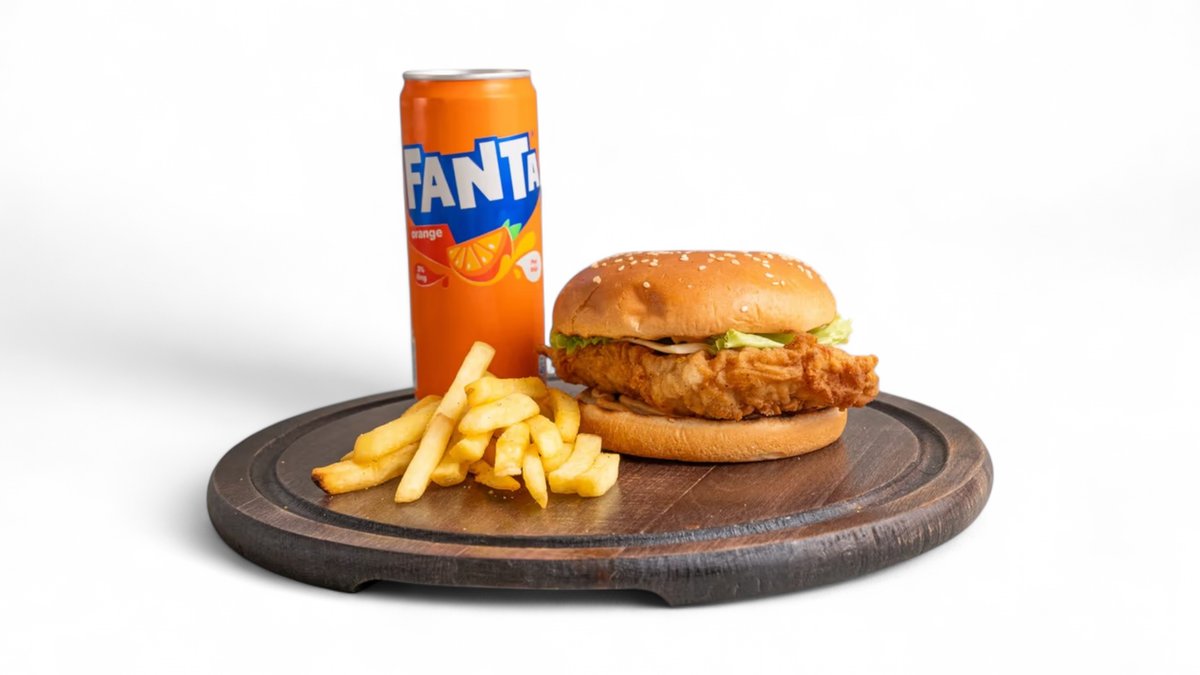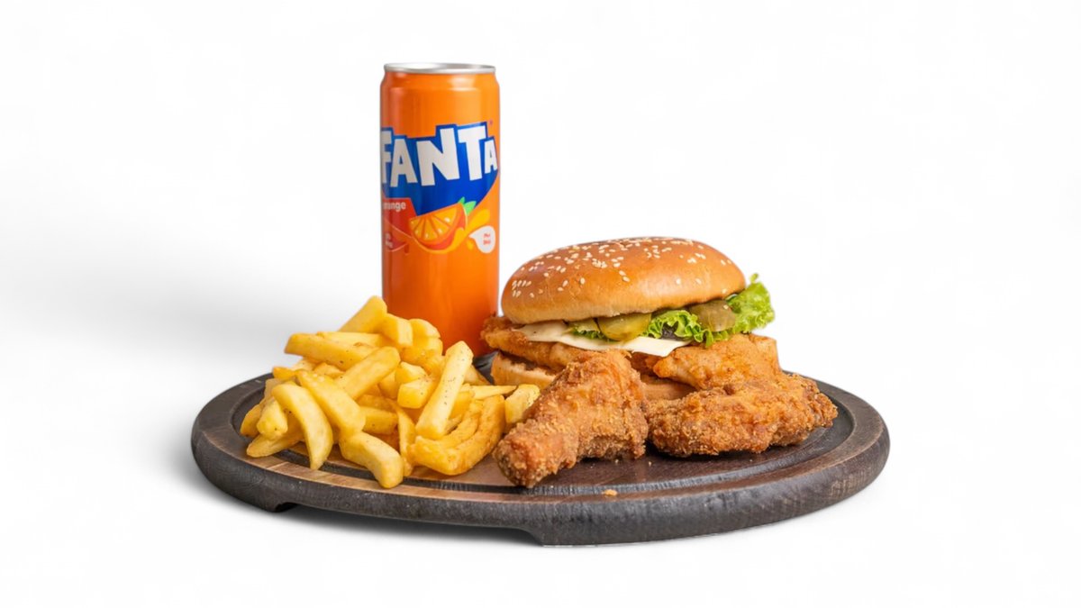 Spicy fillet, 2 wings or 1 drumstick, chips, drink