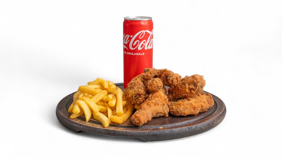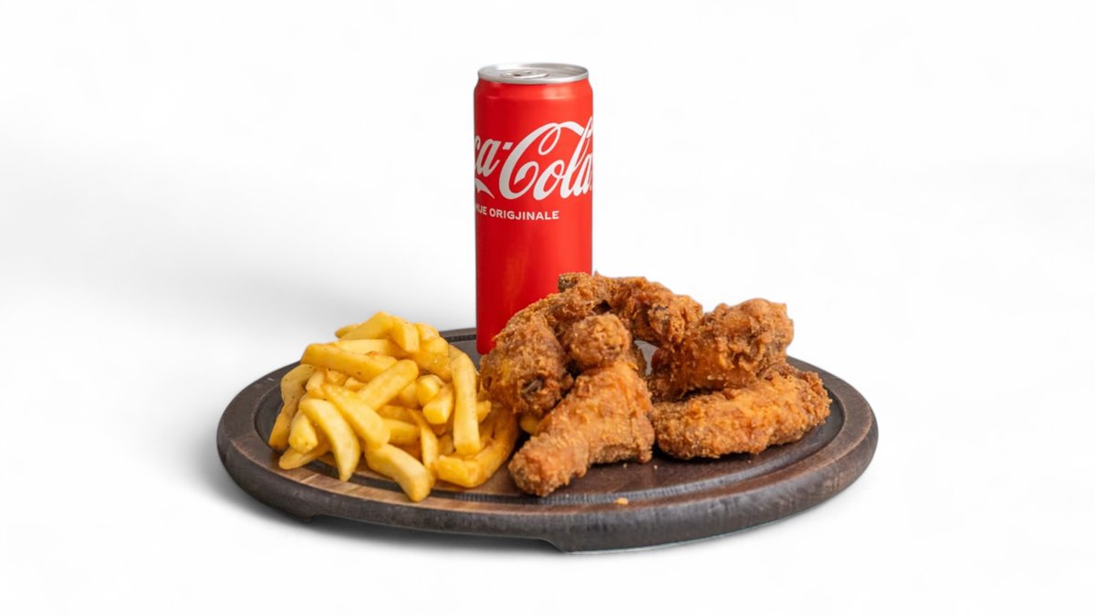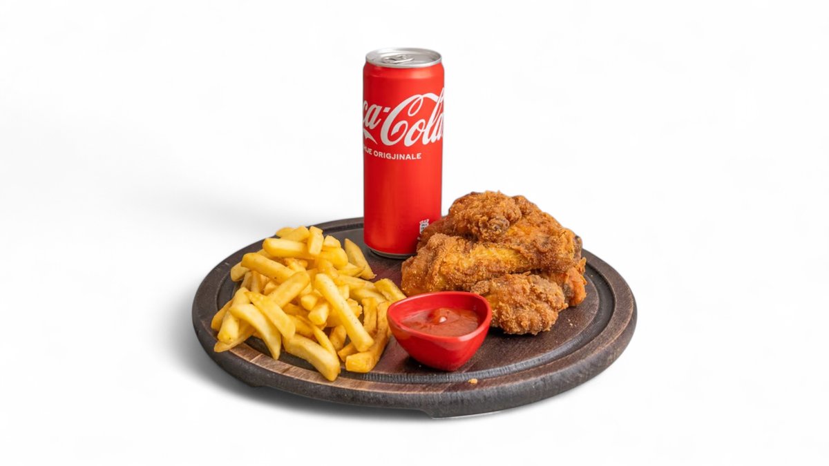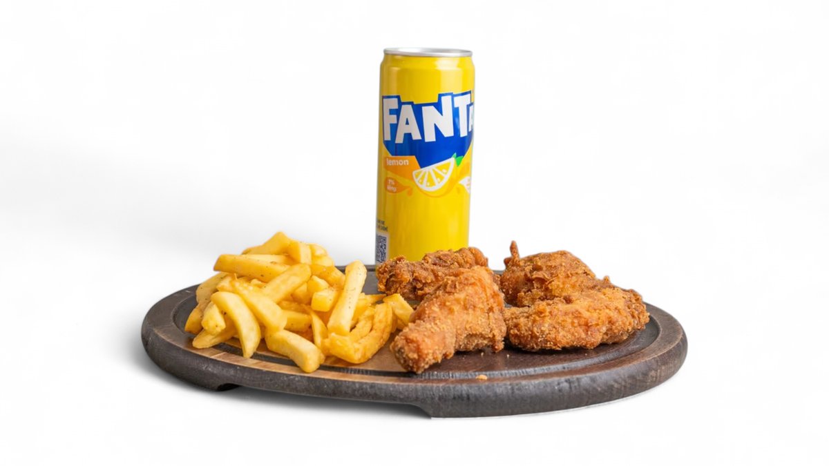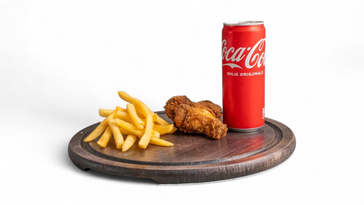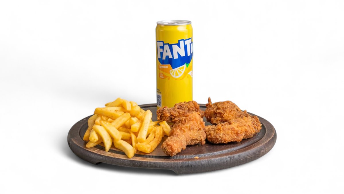 Fillet, 2 wings or 1 drumstick, chips, drink