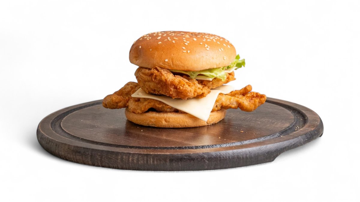 2 Fillet, cheese, pickled cucumber, tomato, onion, lettuce, mayonnaise, burger sauce
