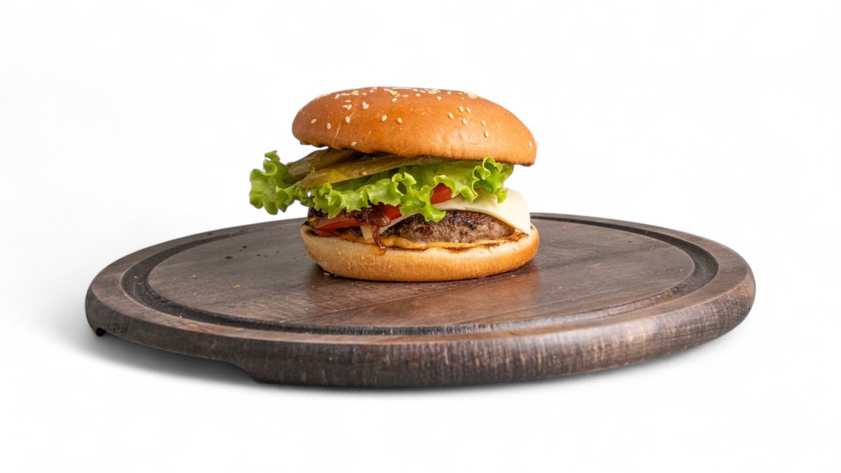 Fillet, cheese, pickled cucumber, tomato, onion, lettuce, mayonnaise, burger sauce