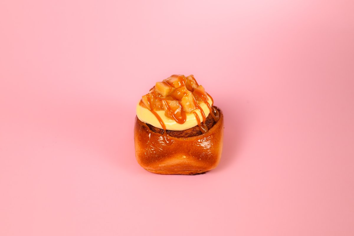 Cinnamon roll me ftua të butë dhe karamel au beurre salé, ku ëmbëlsia dhe nota e kripur krijojnë ekuilibër perfekt.