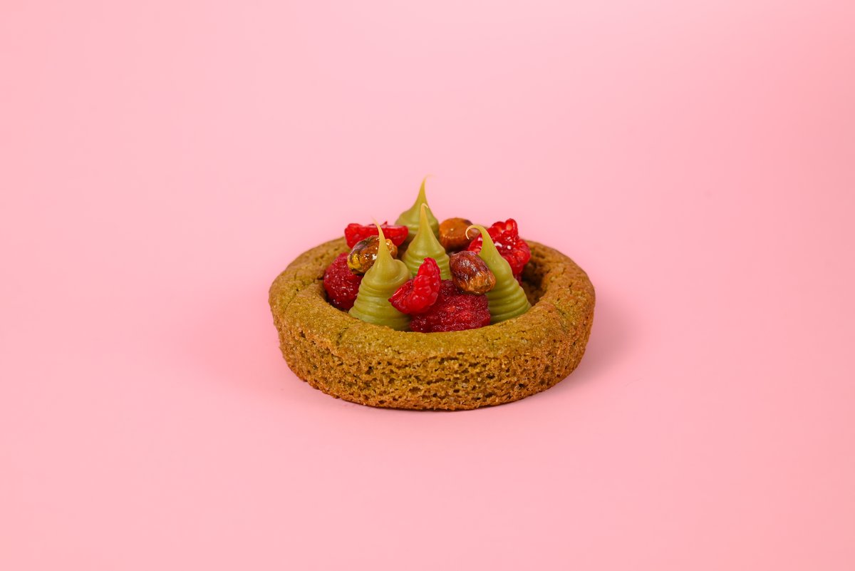 Me ganache pistachio dhe reçel mjedre Cookie delikate me ganache pistachio dhe reçel mjedre. E balancuar dhe jo e rëndë.