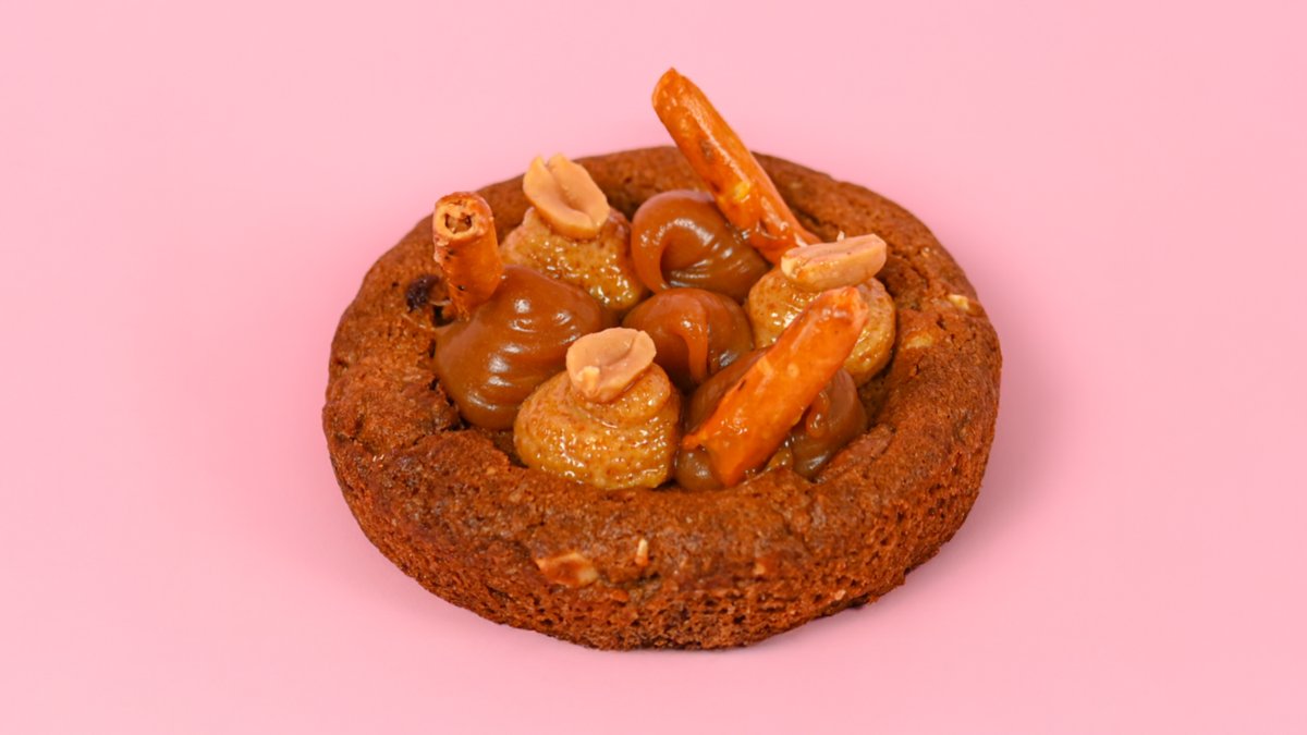 Me karamel au beurre salé dhe pralinë kikiriku Cookie e butë nga brenda, me karamel au beurre salé dhe pralinë kikiriku. Shije fantastike.