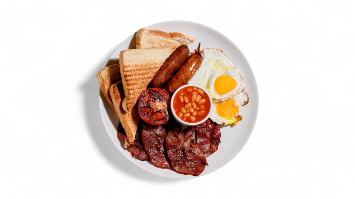 2 veze sy, salcice, bacon hallall, fasule, domate zgare,kërpudhë & buke