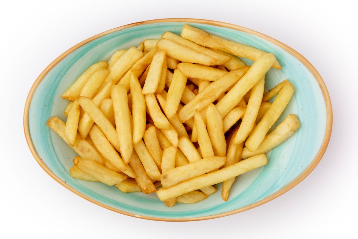 Pulë e holluar, e mbuluar me brumë për pjekje dhe e skuqur, shërbehet me salcë speciale, patate dhe domate