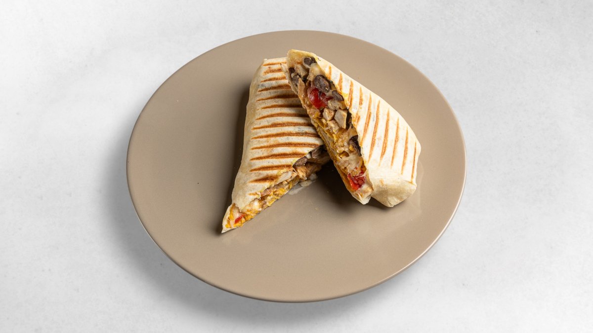 Gegrillte Weizentortilla mit saftig gegrillter, fajita-marinierter Hähnchenbrust, Chipotle-Salsa und Cheddar-Käse-Mix