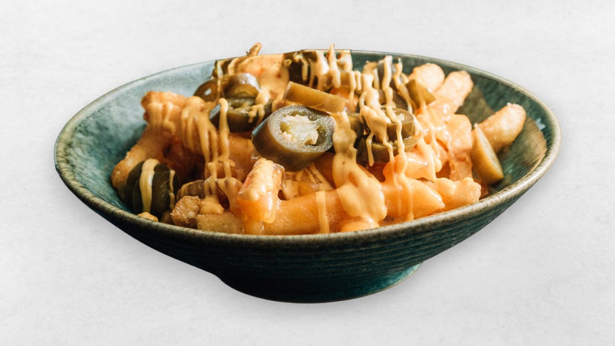 Premium Fries, hausgemachte Cheddar-Soße, Jalapeño