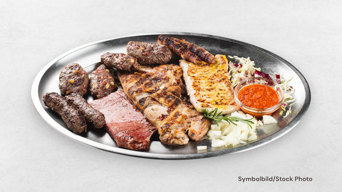 Großes Grillhacksteak nach Balkan-Art, außen knusprig, innen saftig