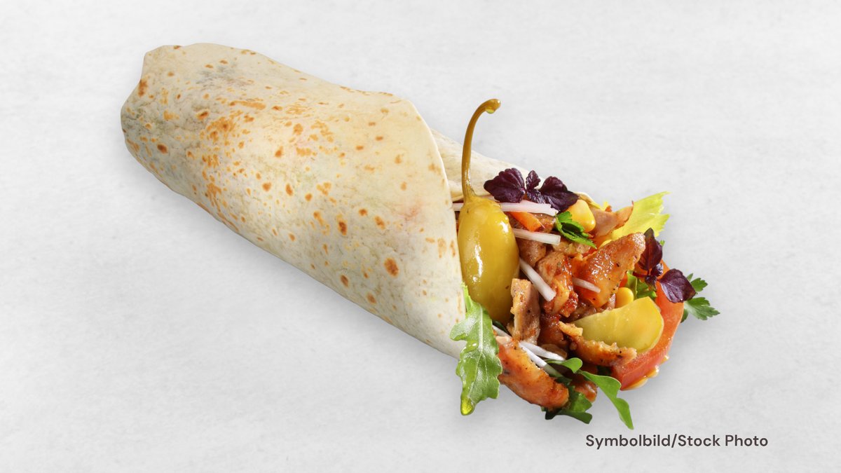 Meat, tomatoes, lettuce, onion, sauce, flatbread