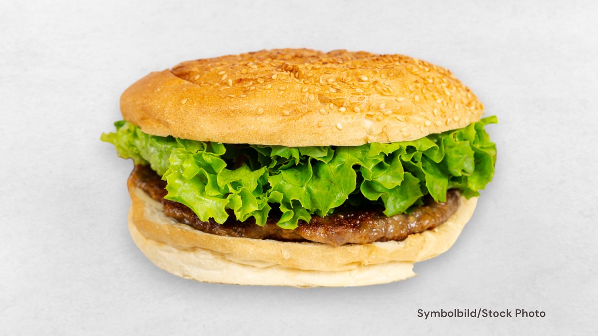 320g Fleisch, Bacon, Essiggurken, Salat, Tomaten, Zwiebel, Soße