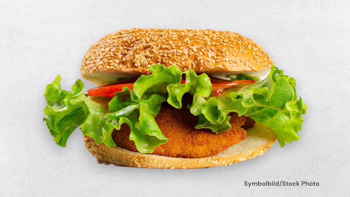 Riesenschnitzel, Hühner, Burgerbrot, Salatgarnitur, Soße