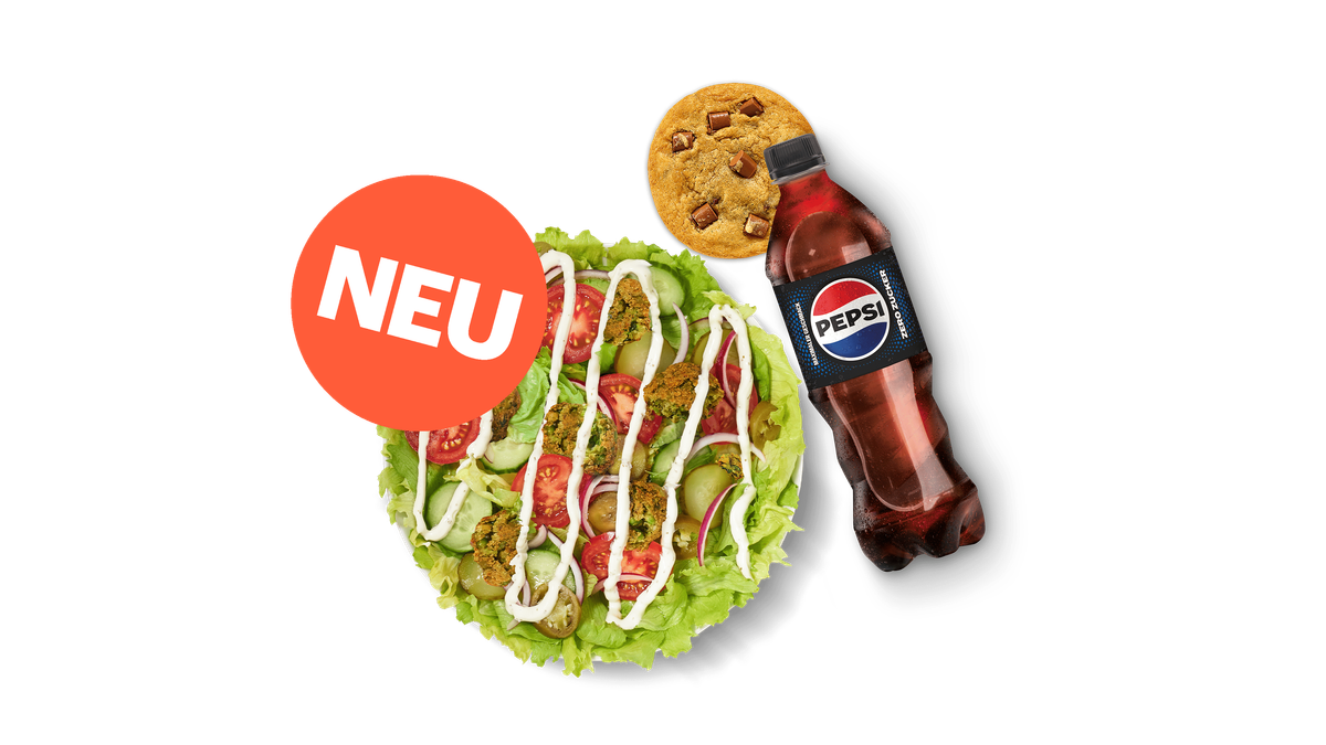 1 Smashed Falafel Wrap, 1 drink, and 1 side (cookie, crisps, or medium potato bites) with our new falafel bites