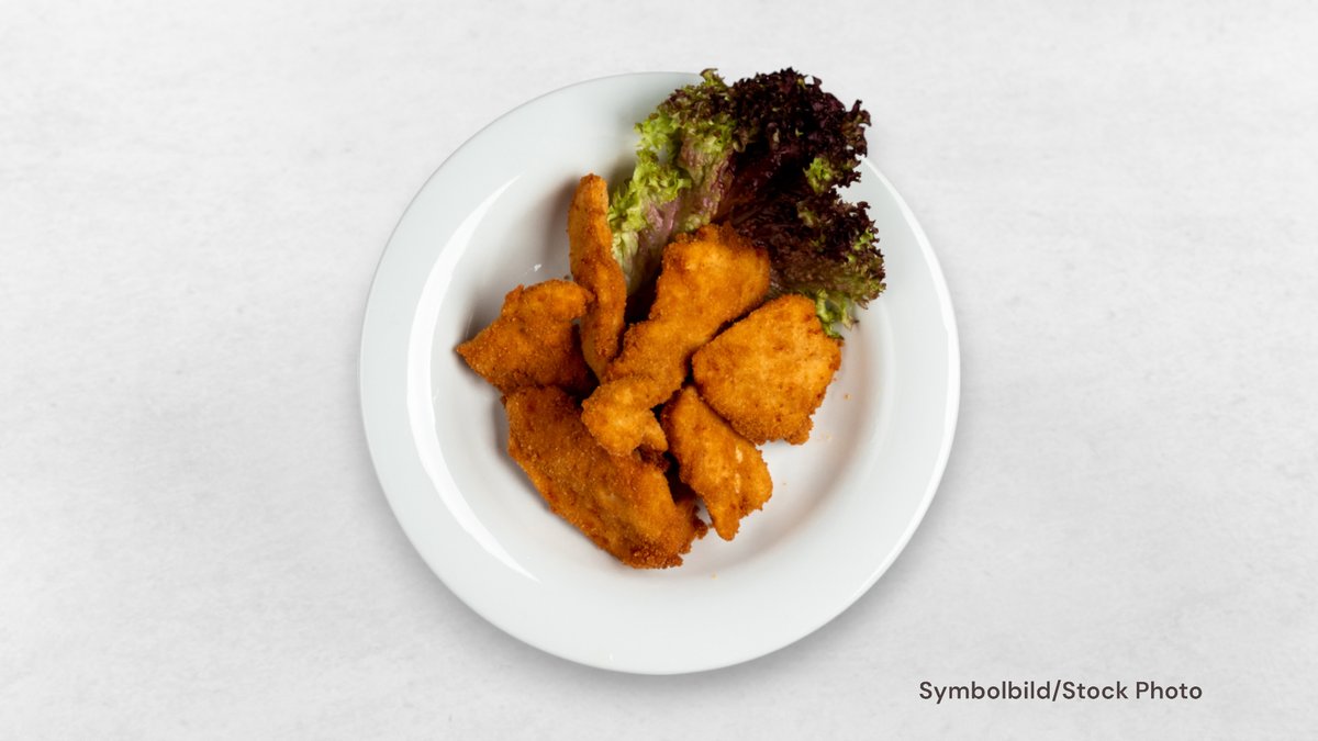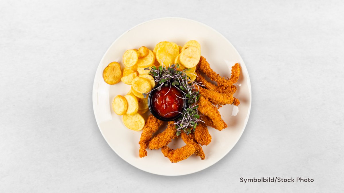 Knusprige Hühnerstreifen, Pommes, Salat, Tomaten, Gewürzgurken, Coleslow, Knoblauch