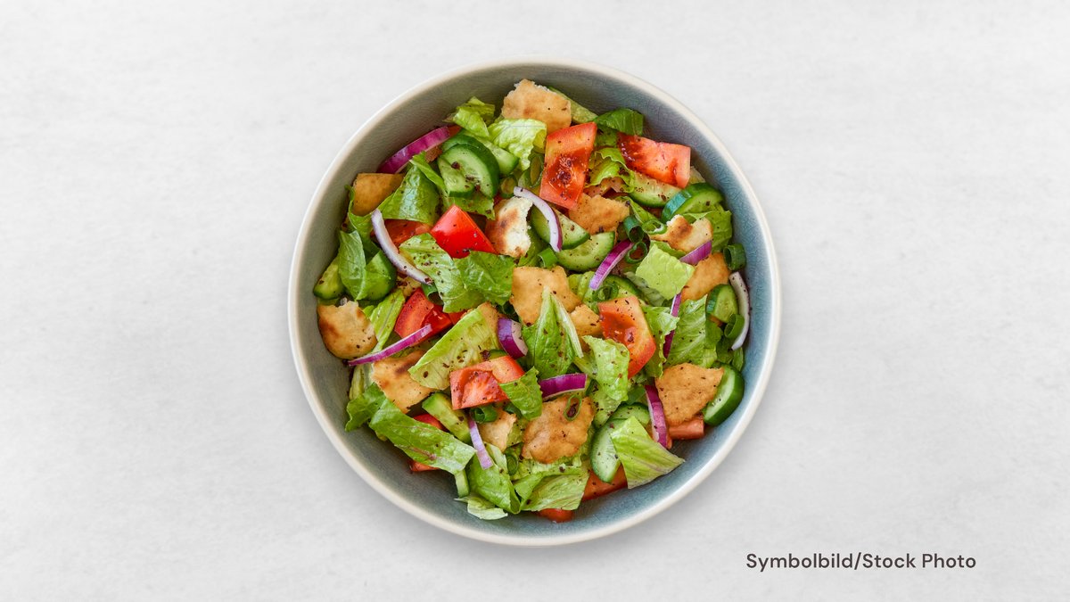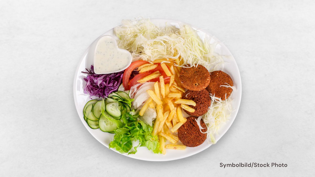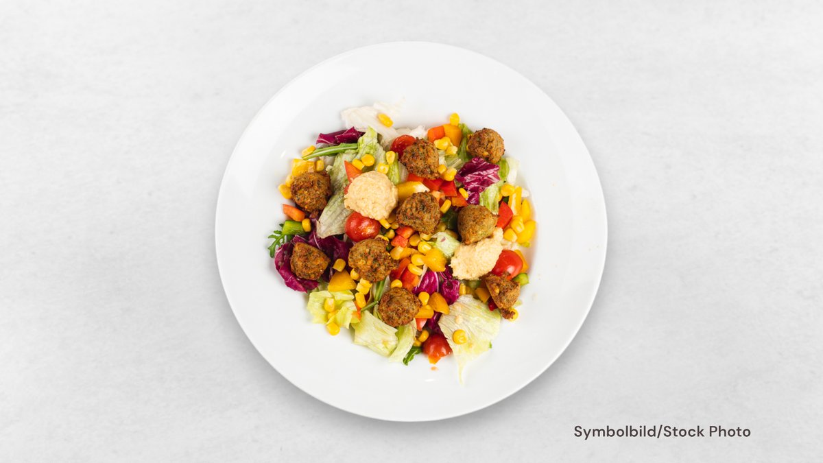 Falafelsalat, Tomaten, Gurken, Zwiebeln, Joghurt-Dressing
