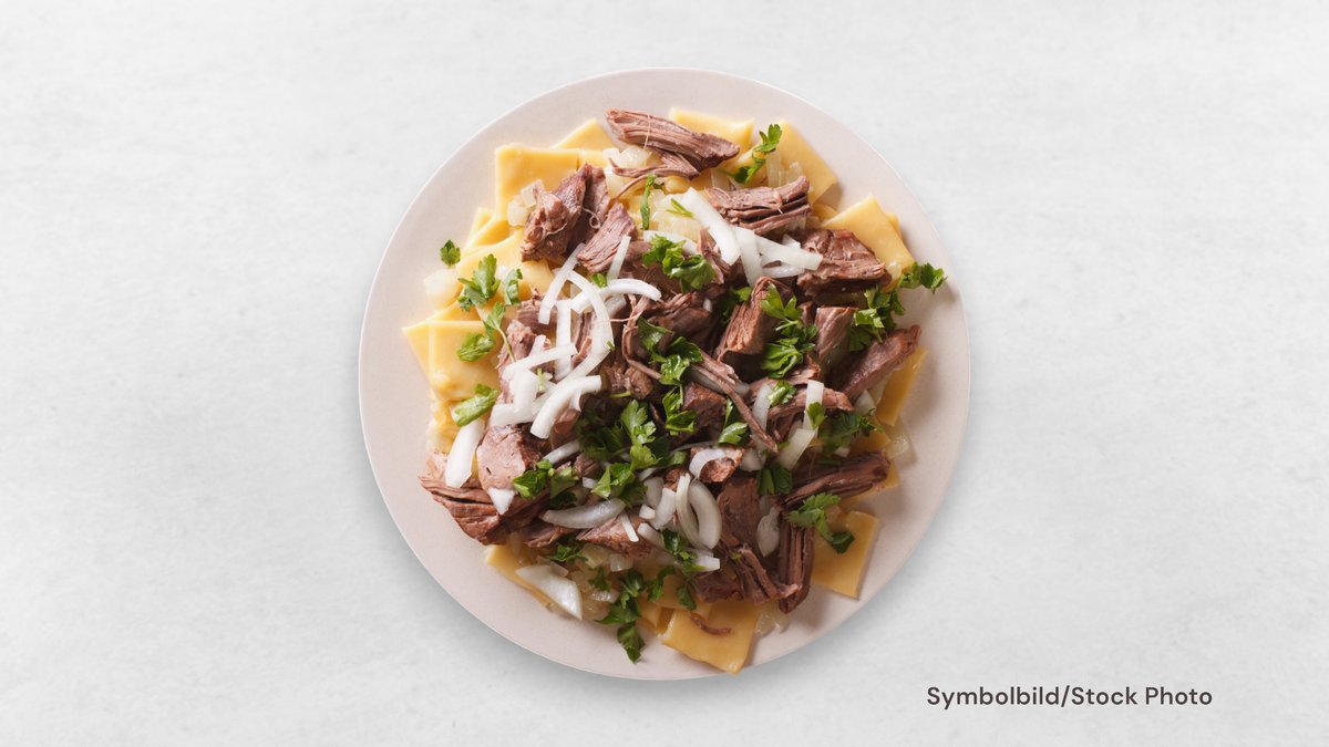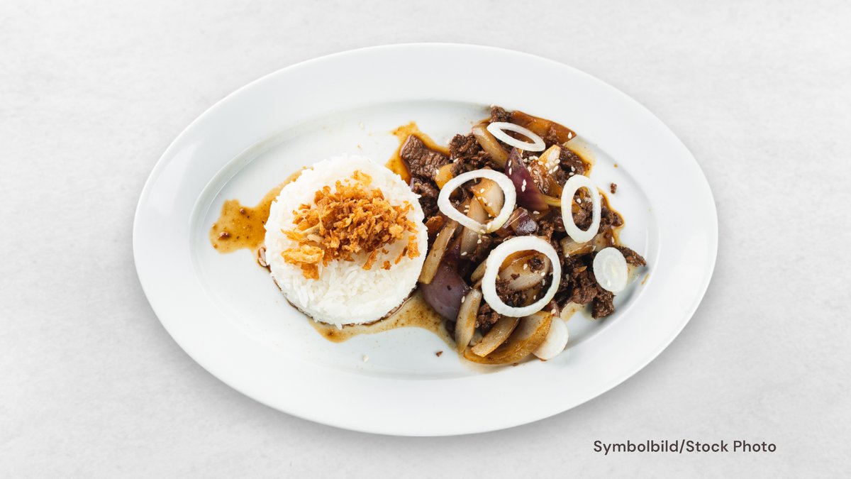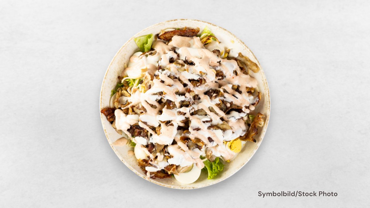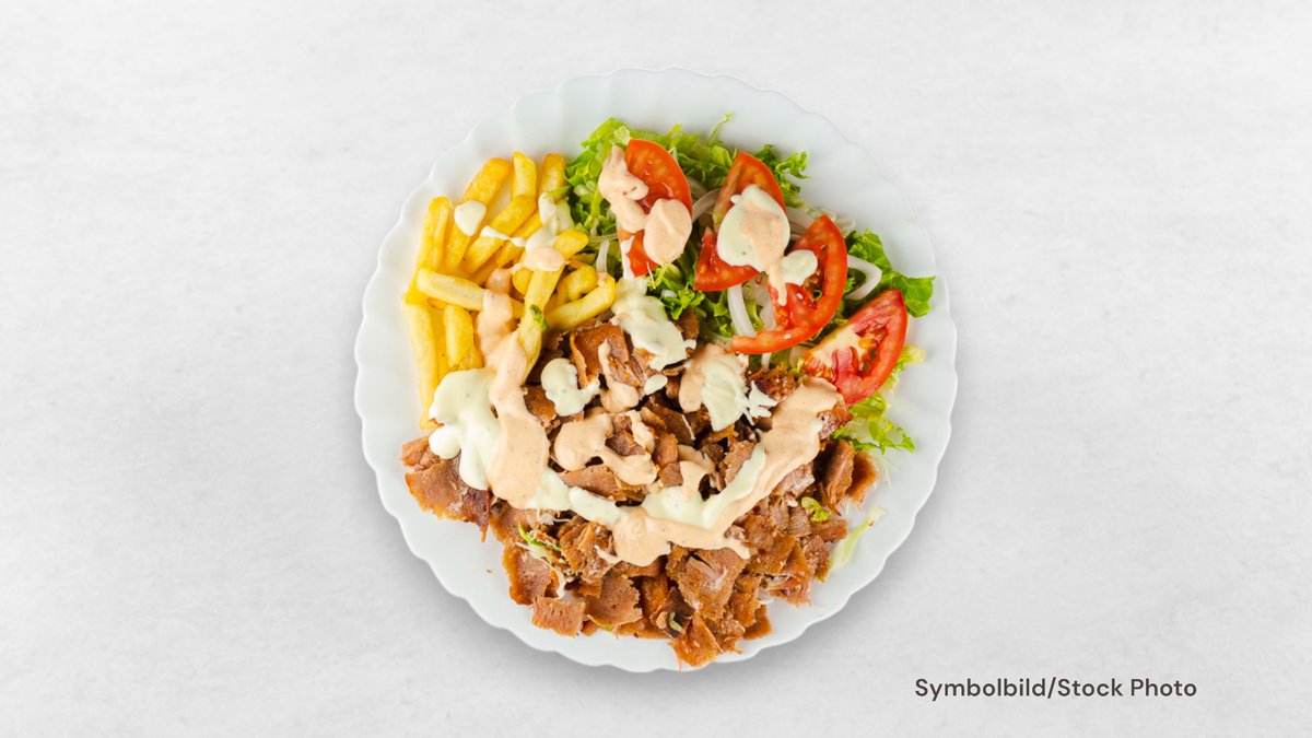 Zwiebeln, Kebabfleisch, Joghurtsoße
