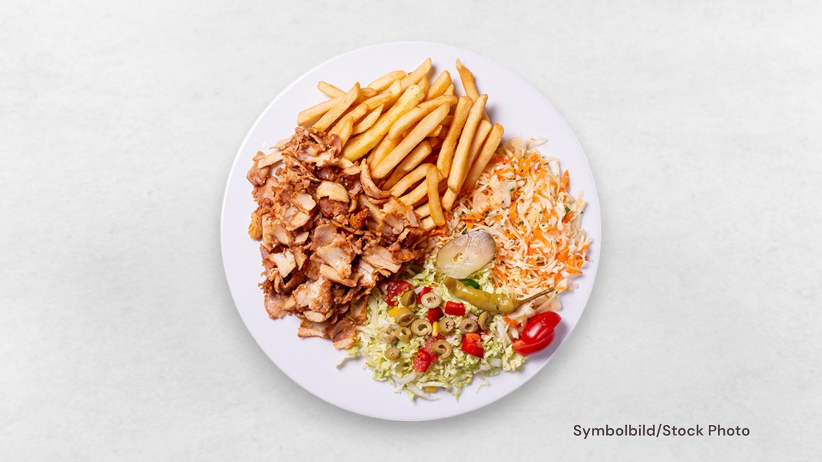 Gurken, Tomaten, Zwiebeln, Kebabfleisch