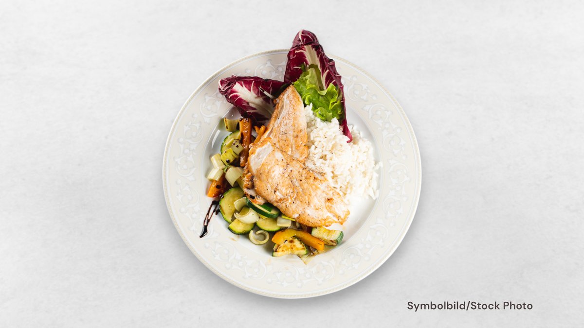Gegrille Hühner, Zwiebeln, Paprika, Pilze, Soja, Käsereis
