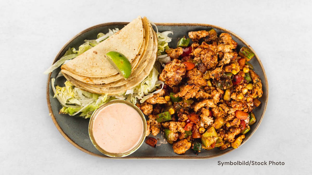 Gegrillte Hühner, Paprika, Pilze, Mais, Käse, Soße