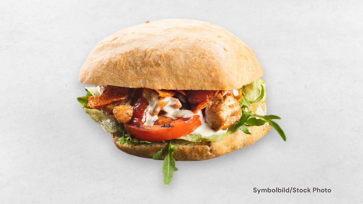 180g Rindfleisch, Cheddar, Speck, karamellisierte Zwiebeln, Salat, Smokeysoße