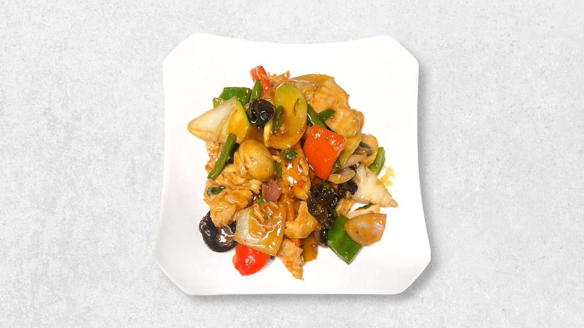 Hühnerfleisch, Süß-Sauer-Soße, Sesam