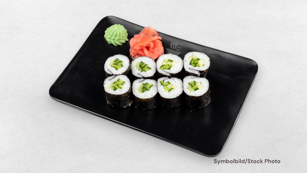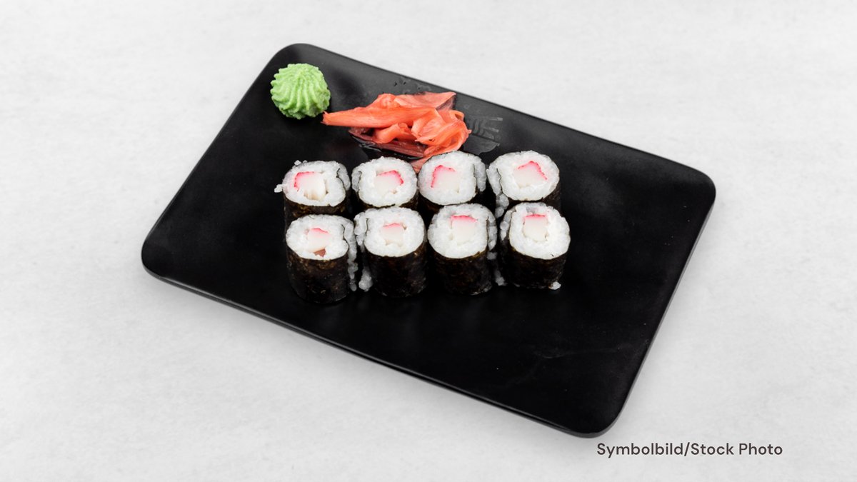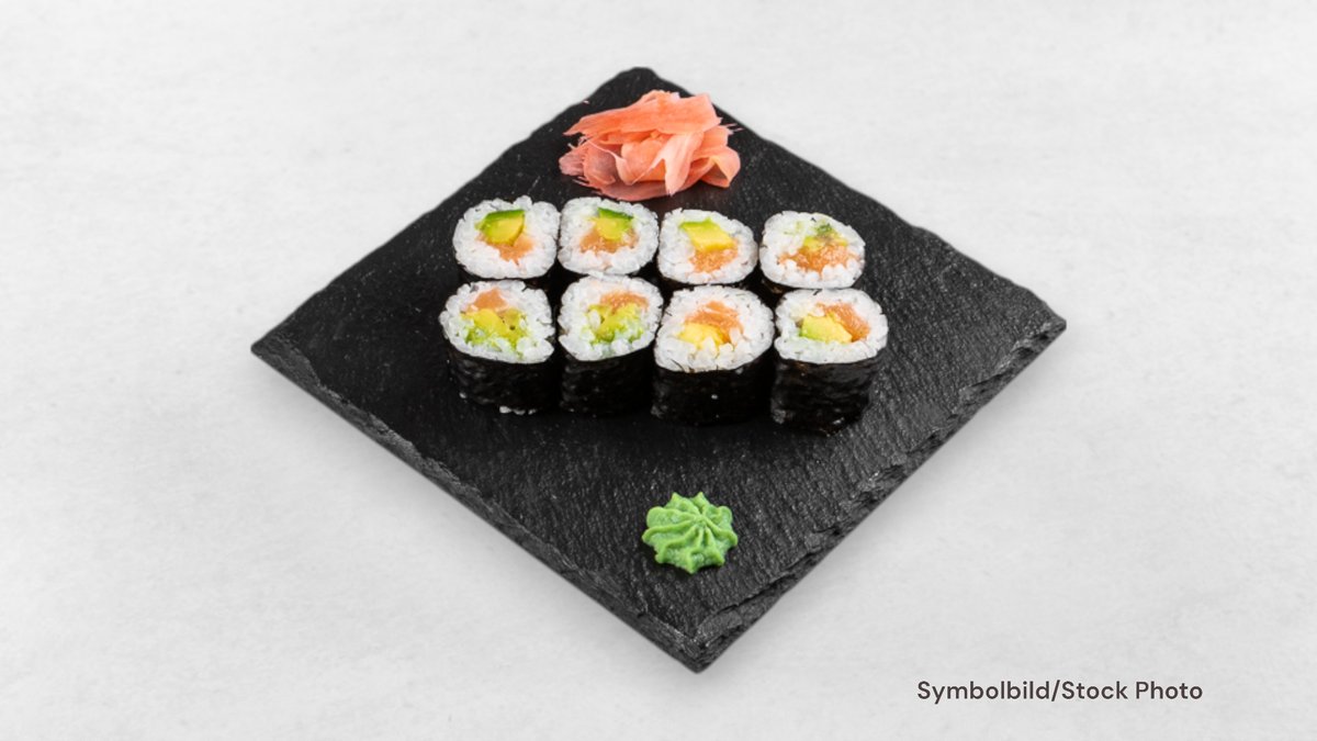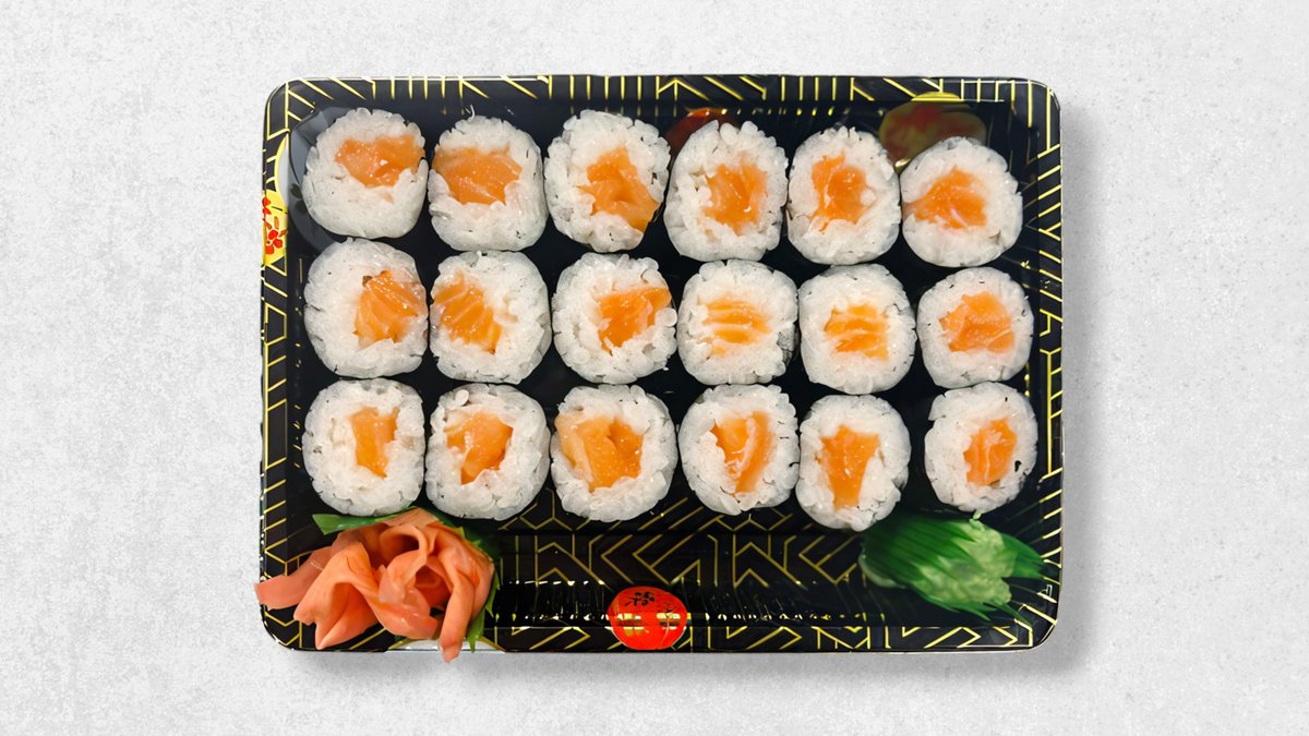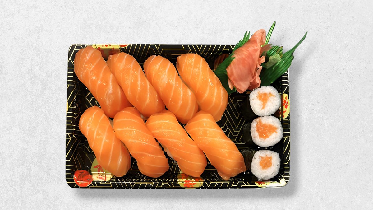 4x Sushi, 3x California Maki, 3x California Sake Maki, 6x Maki, knusprige Ente, Knoblauchsoße