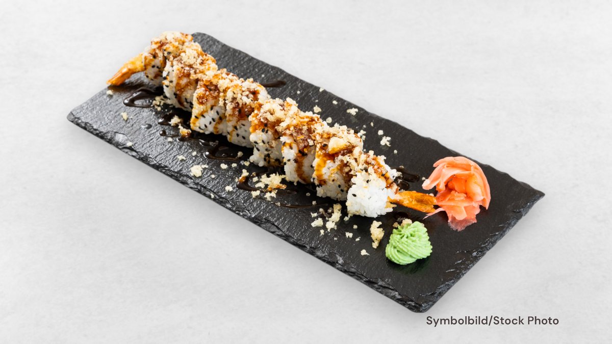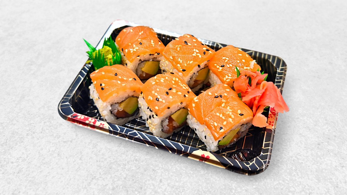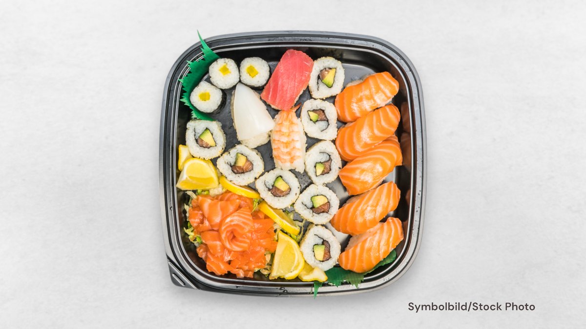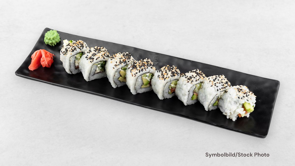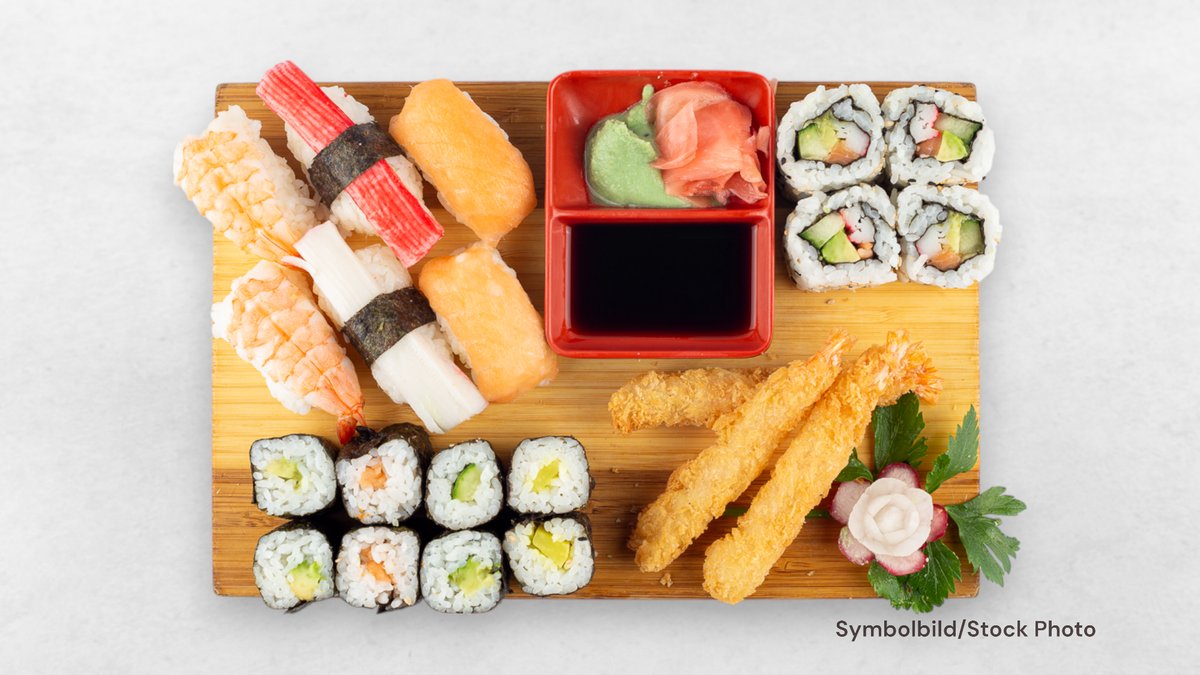 4x Sushi, 3x California Maki, 3x California Sake Maki, 6x Maki, knusprige Ente, Knoblauchsoße