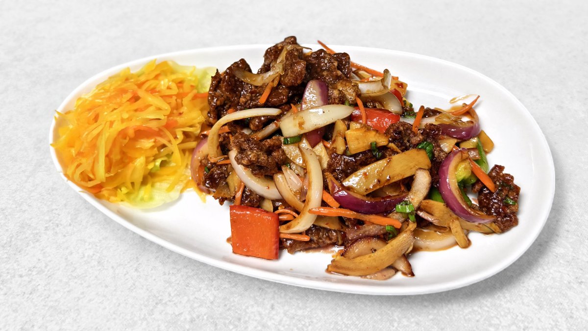 Fleisch mit Sojasprossen & Knoblauchsoße
