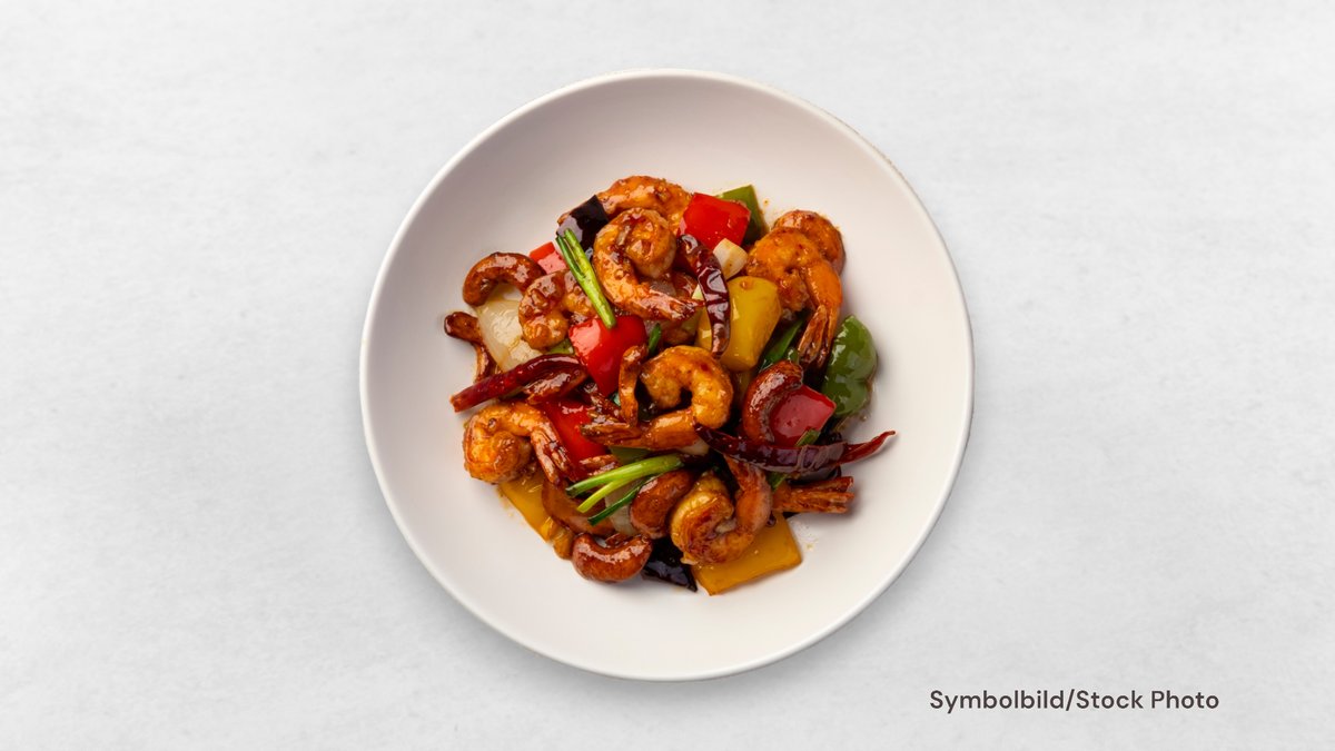 3 Fleischsorten, Shrimps, Ente, frische Gemüse