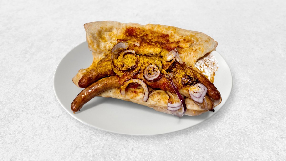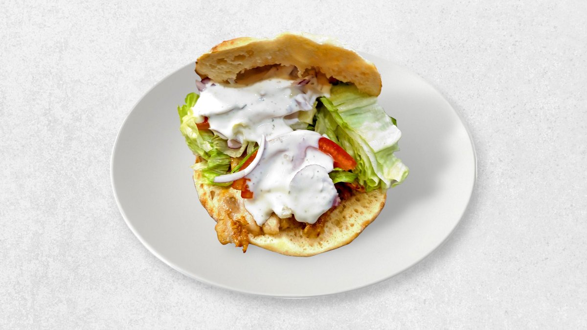 Tomaten, Zwiebeln, Salat, Soße deiner Wahl, Fladenbrot