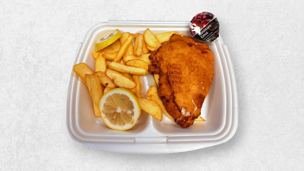 Schweineschnitzel, Semmelbrösel paniert, Beilage deiner Wahl