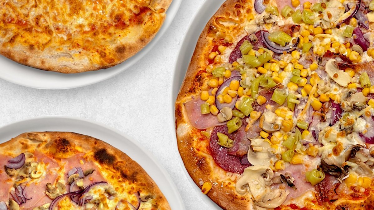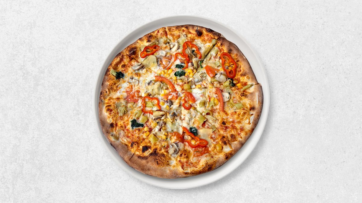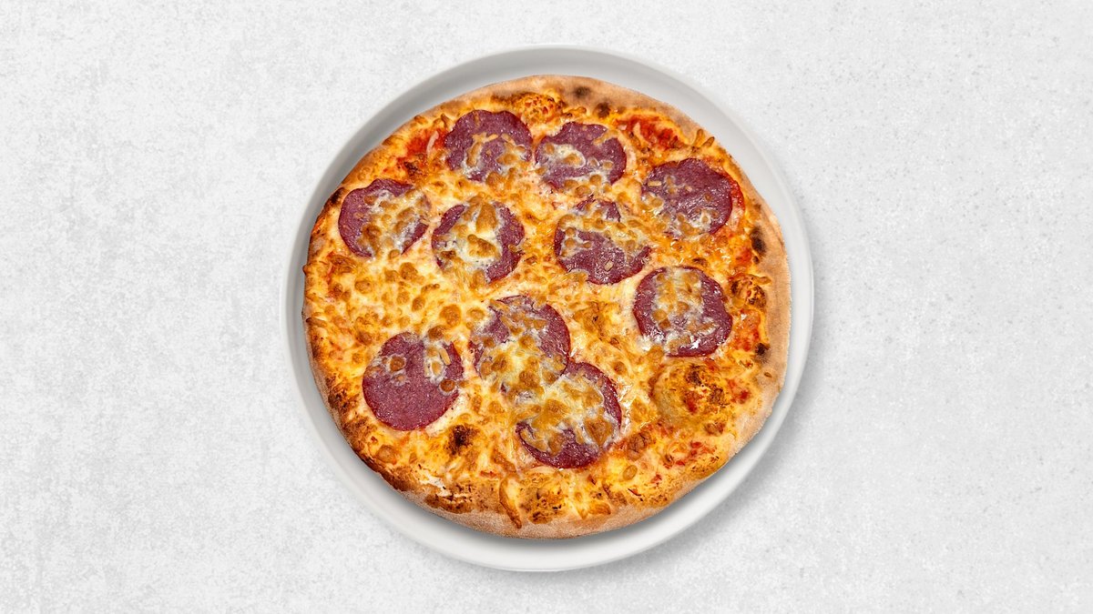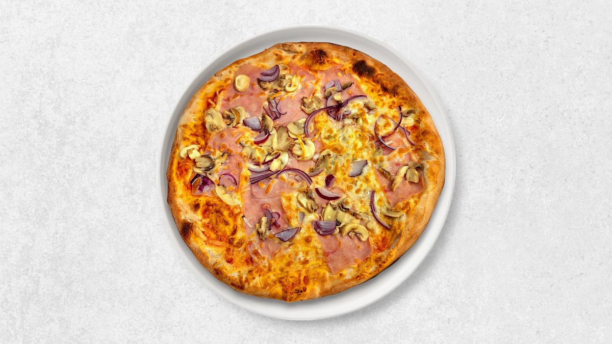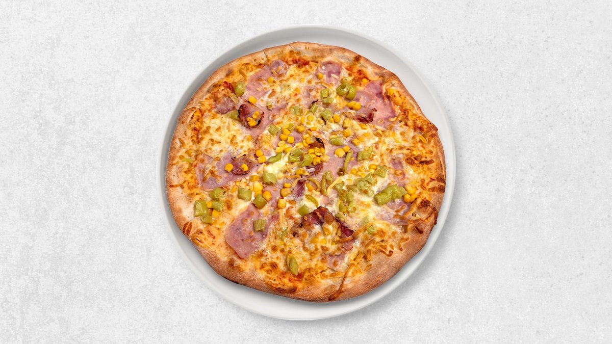 Speck, Schinken, Salami, Mais, Champignons, Pfefferoni, Zwiebeln, Knoblauch