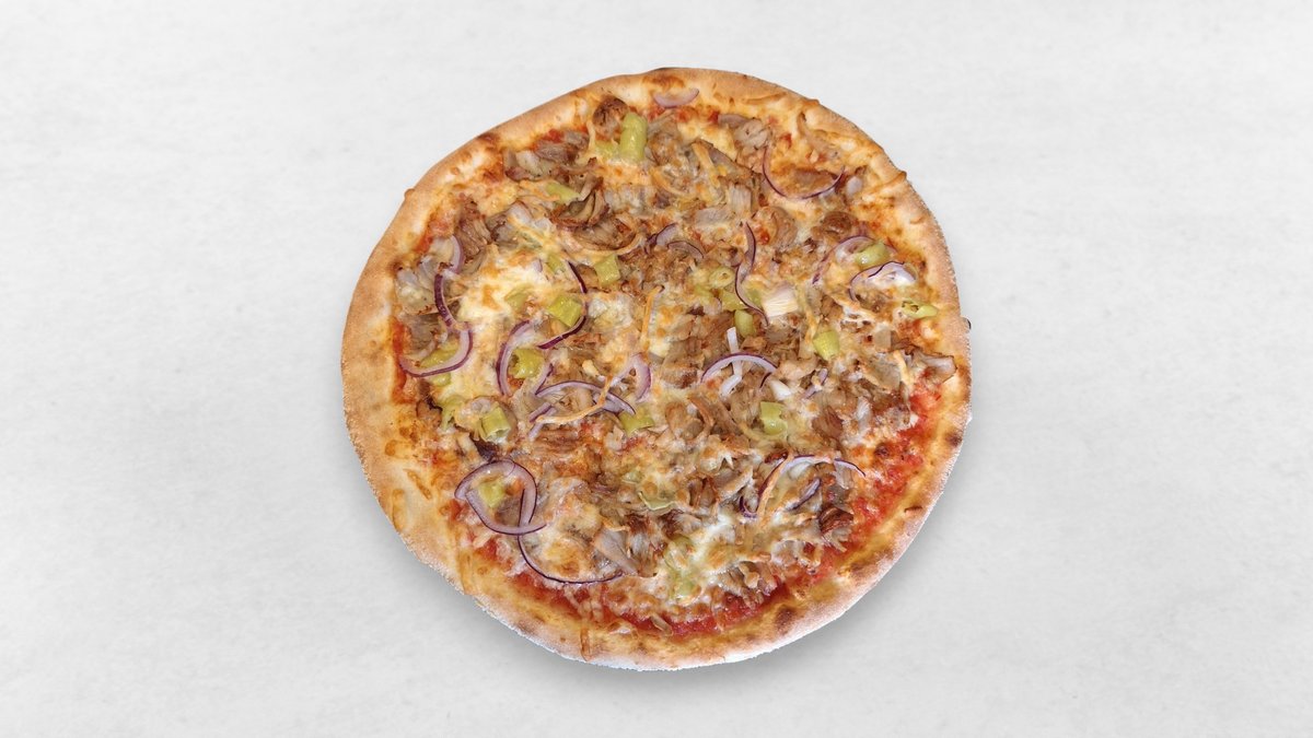 Schinken, Speck, Mais, Zwiebeln, Pfefferoni, Schafskäse, Knoblauch