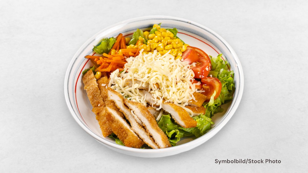 Elsbergsalat, Tomaten, Gurken, Zwiebeln, Paprika, Hühnerstreifen