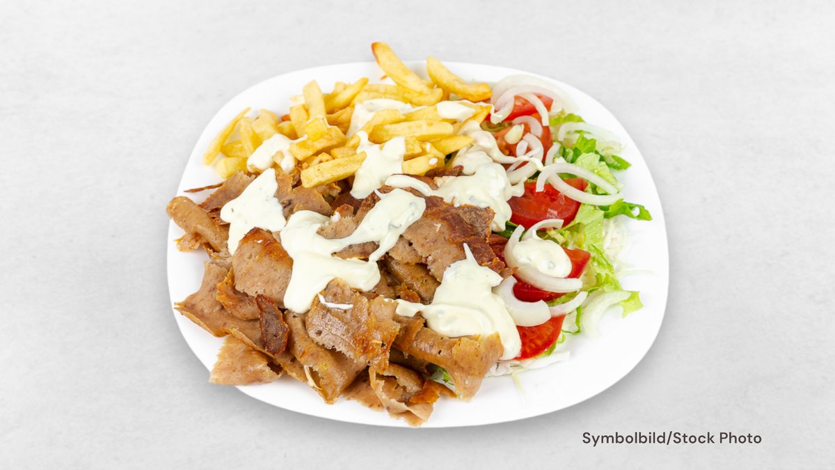 Kebabfleisch, Schafskäse, Pfefferoni, Salat, Tomaten, Zwiebeln, Soße, eine Zutat nach Wahl