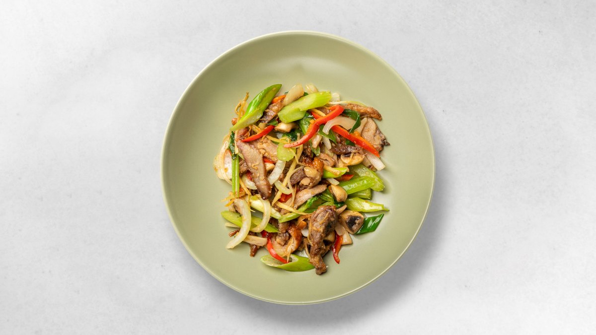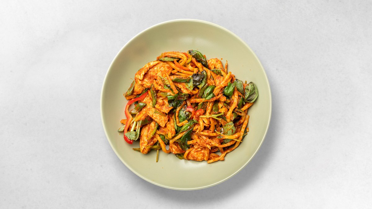 Bamboo strips, lemon leaves, red curry, Thai basil